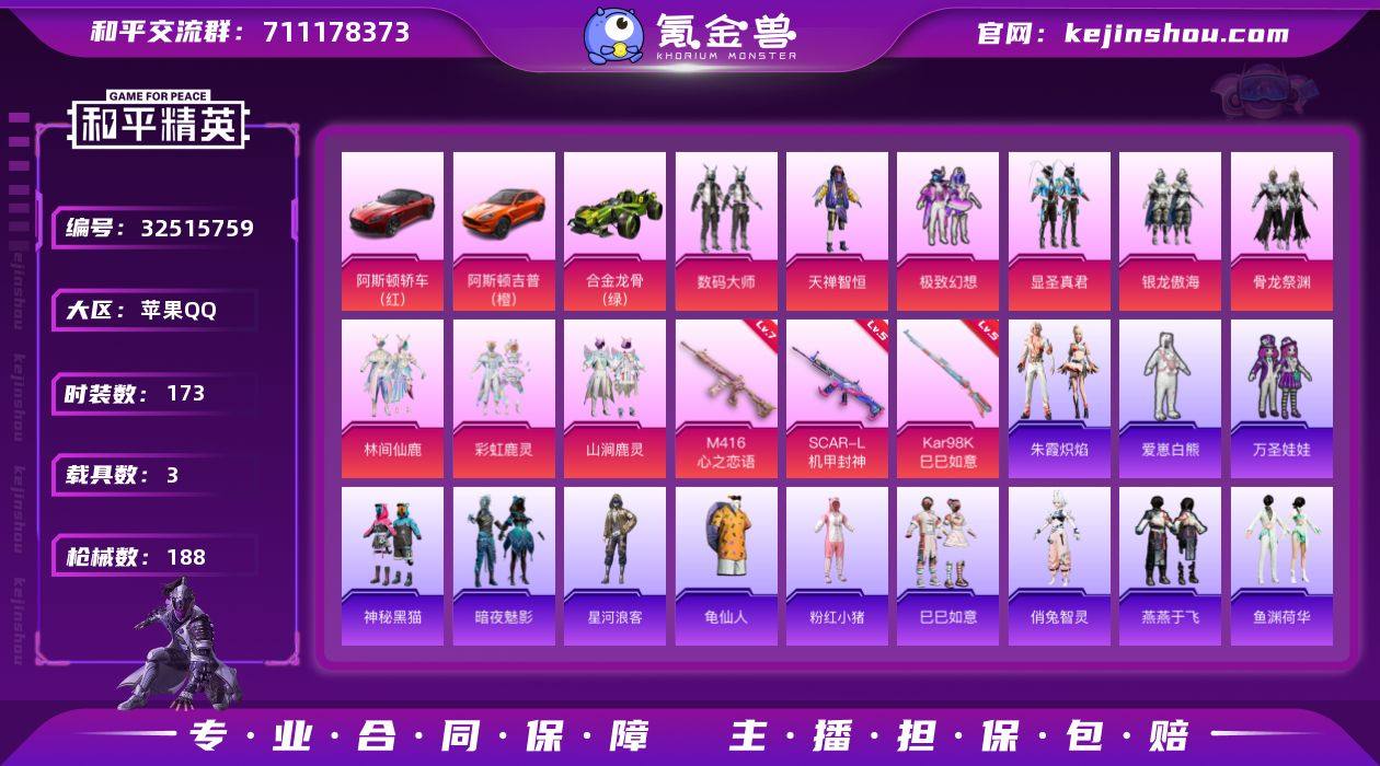 YZJ14449 可二次 社交限制不影响游戏 苹果Q-3载具9粉装3特效枪23热门【精氪小女号 双字id:煜呤 满级M4心之恋语 绿合金龙骨 红马丁 橙马丁 山涧鹿灵 彩虹鹿灵 天禅智恒 童话森林 神秘黑猫 爱崽白熊】173套装188枪皮 65521热力值 6印记 历史卓越王牌7星 【3载具】 阿斯顿马丁S红色 阿斯顿马丁X橙色 合金龙骨绿色 【9粉装】 数码大师 天禅智恒 极致幻想 显圣真君 骨龙祭渊 银龙傲海 林间仙鹿 山涧鹿灵 彩虹鹿灵 【3特效枪】 M416-心之恋语 (7级) Kar98K-巳巳如意 (5级) SCAR-L-机甲封神 (5级) 【23热门】 龟仙人 雪山精英 爱崽白熊 万圣娃娃 童话森林 神秘黑猫 暗夜契约 团圆交子 瑞龙福将 星河浪客 粉红小猪 冰爽海盐 抹茶蜜豆 青龙圣者 破蛋小黄鸡 黑色刀锋 极速红龙 M762-瑞龙福将 M249-古堡领主 MK47-林间仙鹿 Mini14-林间仙鹿 汤姆逊-林间仙鹿 GROZA-林间仙鹿 【1飞行器】 机甲封神飞行器 【3头盔】 九霄头盔 折纸暴龙头盔 夏日绵绵冰头盔 【5背包】 九霄背包 精灵迷巫背包 百万伏特背包 神秘黑猫背包 心之恋语背包 营地ID:705978315