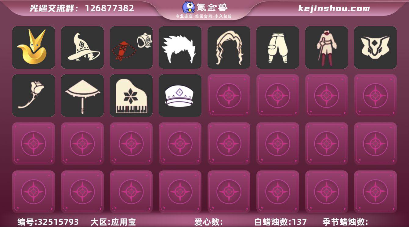 蜡烛数:137/爱心数:60/晨岛/雨林/霞谷/墓土/小王子季/小王子发型/小王子套装/玫瑰花/巫师/鲤鱼套/星球夹克/白雪斗篷/搓澡巾/击剑裤/虚荣/平顶帽/雨伞/高音钢琴/黄鼠狼/贝壳发饰/玉兔发饰/雪花发夹/创始人斗篷/小王子围巾/情人秋千