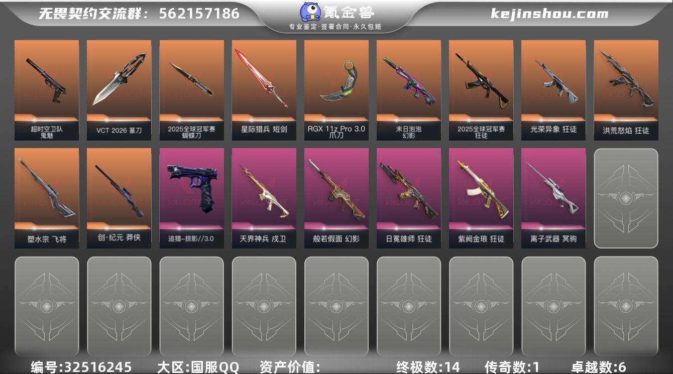 【qyz9629】包人脸 玩够能回血 25套 显卡爪 qyz9629 【近战武器】:近战武器-2025全球冠军赛 蝴蝶刀,近战武器-碎心裂刃,近战武器-VCT 2026 篆刀,近战武器-RGX 11z Pro//3.0 爪刀,近战武器-威龙之刃,近战武器-夜刃诡镰,近战武器-星际猎兵 短剑 【狂徒】:狂徒-2025全球冠军赛,狂徒-洪荒怒焰,狂徒-光荣异象,狂徒-日冕雄师,狂徒-紫阙金琅 【幻影】:幻影-末日泡泡,幻影-般若假面 【戍卫】:戍卫-天界神兵 【冥驹】:冥驹-离子武器 【飞将】:飞将-塑水宗 【莽侠】:莽侠-创·纪元 【骇灵】:骇灵-无限竞技 【追猎】:追猎-掠影//3.0 【鬼魅】:鬼魅-超时空卫队 【卡面】:无畏契约GO!第一卷:芮娜 卡面,无畏契约GO!第一卷:零 卡面,钢锁vs盖可 卡面,别冒尖 卡面,代号红色 卡面,新兵报到 卡面,V契约 卡面,无畏契约 卡面 【喷漆】:审判之爪 喷漆,买装还是存钱 喷漆,酷熊冲浪 喷漆,红鳞 喷漆,无畏契约GO!第一卷:零 喷漆,无畏契约GO!第一卷:捷风 喷漆,暴走萝莉 喷漆,松叶 喷漆,无畏契约GO!第一卷:奇乐 喷漆,放下武器 喷漆,胜利属于无畏契约 喷漆,GLHF 喷漆,无畏契约 喷漆 【挂饰】:Z世代特饮 挂饰,天外飞客 挂饰,《双城之战》魄罗 挂饰,...