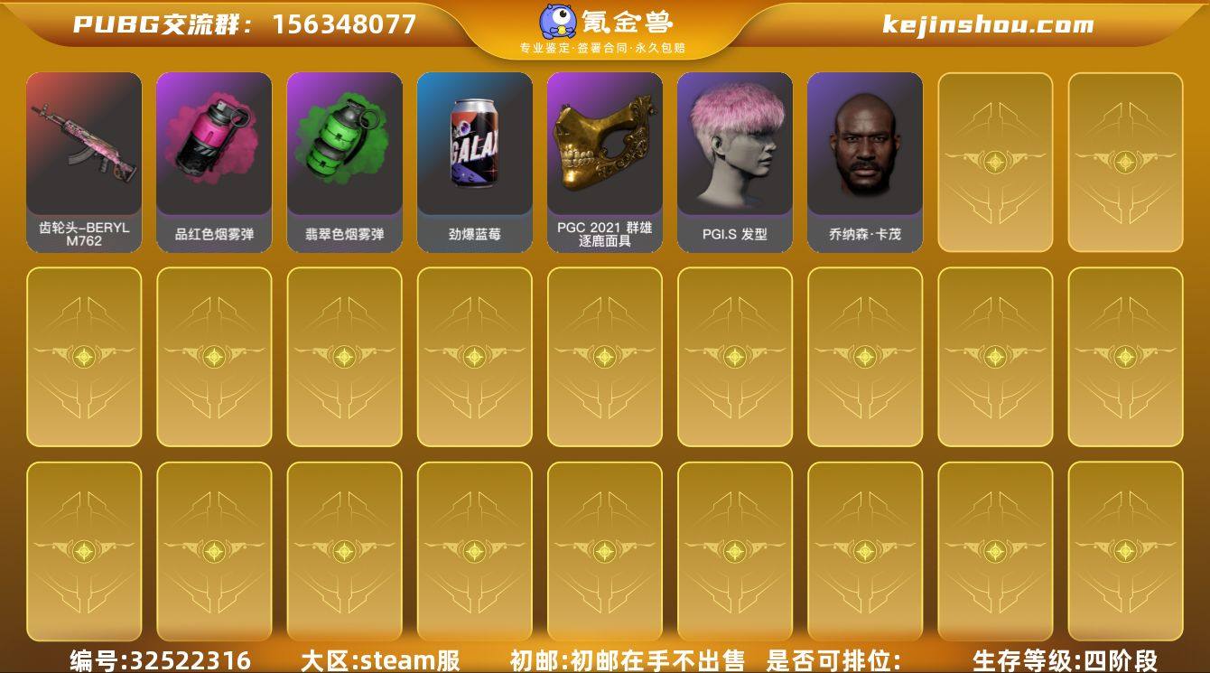 JDPZ12887 生存500级可排位/9级青龙-BERYLM762/4级妖魔之触-ACE32/4级无信号-M416/2级魔咒之力-MK12/1级粉梦长眠-德拉贡诺夫/青色烟雾弹/黑鬼/丸子头/滑雪镜/红面具/发光手臂/星魂白运动/绿东南亚/白熊鞋/ 0B69LX号 无排名, 生存等级711, 名誉等级3, 聚合物85, 枪皮数量215, [成长型] 青龙 - Beryl M762[9级], [成长型] 无信号 - M416[4级], [成长型] 妖魔之触 - ACE32[4级]