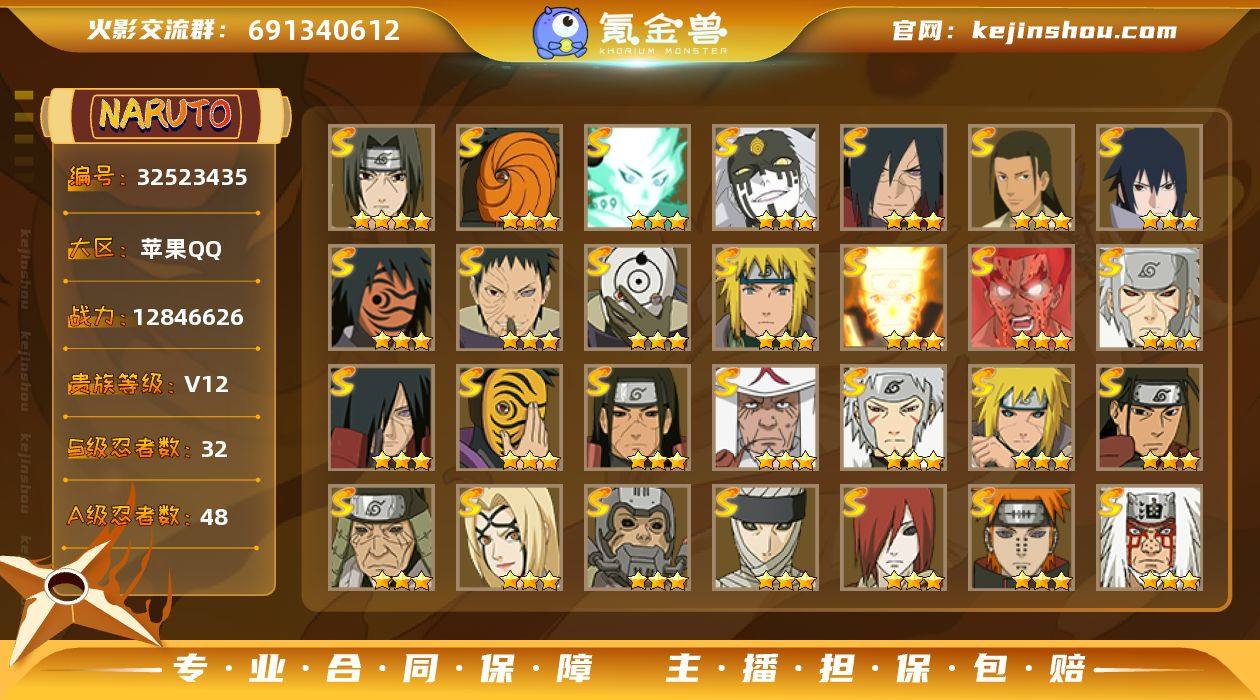 0B9KMO 号,VIP12,战力:12846626,S忍者数量:34,A忍者数量:60,本服排名:358,战区排名:未上榜,通灵兽数量:24,时装数:20,段位:暗部2阶,忍者星数:646