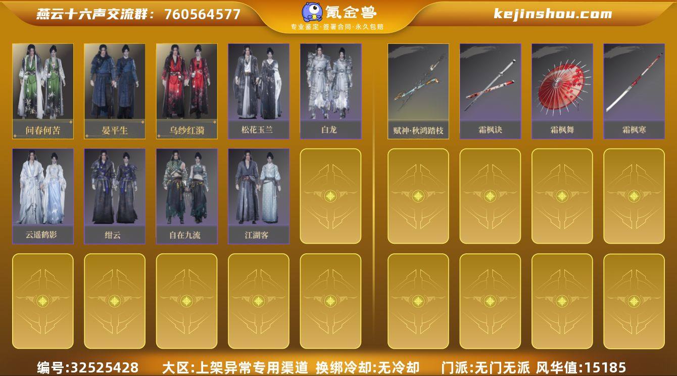 燕云十六声成品账号 风华1.5w 等级100 已用八音2颗 无名剑无名枪武学 资源多也可以转别的门派 3.9鹅 除皇宫探索4级剩下的地图都6级 可小刀可议价