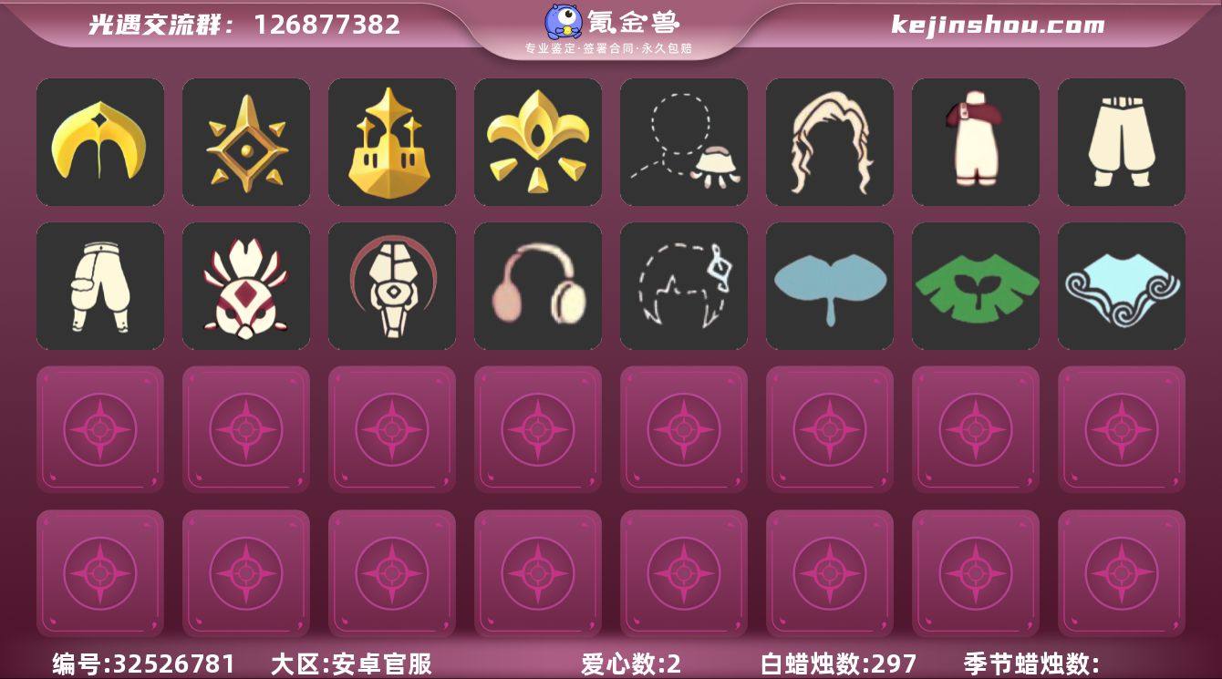 安卓官服四季阿努比斯巫师蝙蝠武士裤【JLGY4362】 常驻:雨林,霞谷,暮土 季节:预言季,圣岛季,梦想季,集结季 礼包:星月头冠,圣诞鹿角,水母肩饰,巫师帽,贝壳发饰,雪花发夹,玉兔发饰,小狗周年头饰,TGC斗篷黑,创始人斗篷,小王子围巾,蝙蝠斗,白雪斗篷,瑞气纸伞,情人秋千,大橘大利,南瓜头,粽子发饰 热门复刻:红吉他,樱花发型,绿芽,海洋斗,武士裤,虚荣,正太头,猫猫头,背带裤,搓澡巾,花环长发,红耳机,箬笠,平顶帽,雨伞,高音钢琴,白金斗篷,黑金斗篷,红金斗篷,黄鼠狼面具,女巫发型,蓝色音乐会 热门物品:手拍大鼓,阿努比斯,毕业手碟,鳐鲲斗篷,凤凰面具,凤凰斗篷,丛林黑面具,六边锅帽子,胜利号角,连帽斗篷,双翼遥鲲斗,留辫蘑菇头,小王子发型,小王子套装 资源:297/2 身高1.88-13.88,当前2.49 -具体资源以衣柜为准-