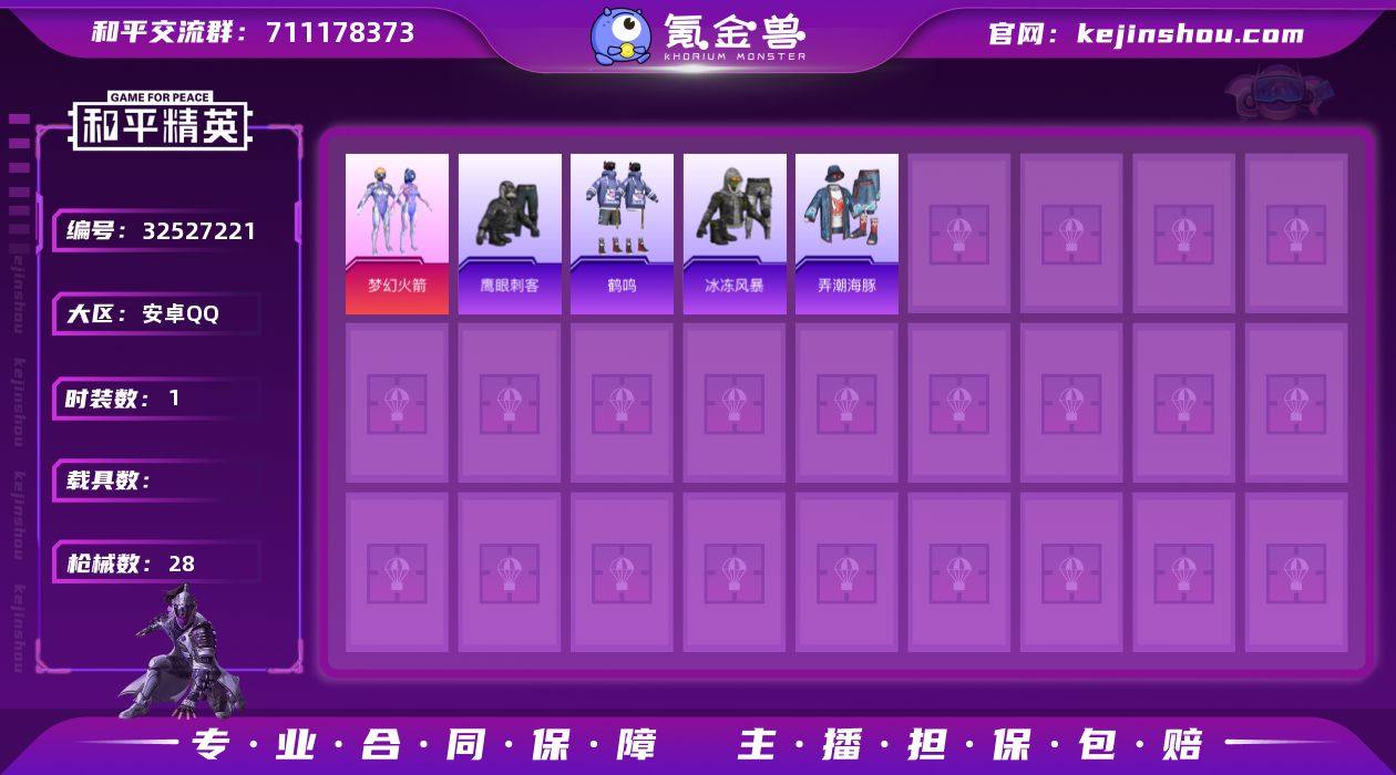 M1047059【1粉装-3特效枪梦幻火箭】安卓手Q-1粉装-3特效枪-14套装-28枪皮-0王牌印记-不朽星钻Ⅳ-7380热力值【1粉装】梦幻火箭【3特效枪】ACE32-萌骑漫游[2级],AA12-G-萌骑幻想[2级],Mk14-福马献瑞[4级]【1稀有】AKM-缤纷海域【2飞行器】云朵驼驼飞行器,星梦奇缘飞行器【2背包】深海小丑鱼背包,梦幻火箭背包【37其它衣服和枪皮】弄潮海豚,冰冻风暴,红釉青花,鹤鸣,SS37特训,街头潮人,狙击之神,雨过天青,星梦畅游,马上有钱,魅力单车,鹰眼刺客,福马献瑞,M16A4-雨过天青,沙漠之鹰-雨过天青,PKM-雨过天青,大砍刀-像素花束,GROZA-福马献瑞,汤姆逊-像素花束,AA12-G-雨过天青,AUG-甜蜜菠萝,Mk14-阳光菠萝,M416-糯团青竹,M249-糯团青竹,Kar98K-梦幻火箭,AUG-耀粉歌者,Mini14-梦幻火箭,P90-玩趣呆呆,M24-天降萌叽,蜜獾-天降萌叽,20-H-星梦奇缘,SKS-迅猛狂鲨,UZI-影袭,蜜獾-启元战纹,AMR-雨过天青,SLR-乌木金纹,DBS-绿洲时空