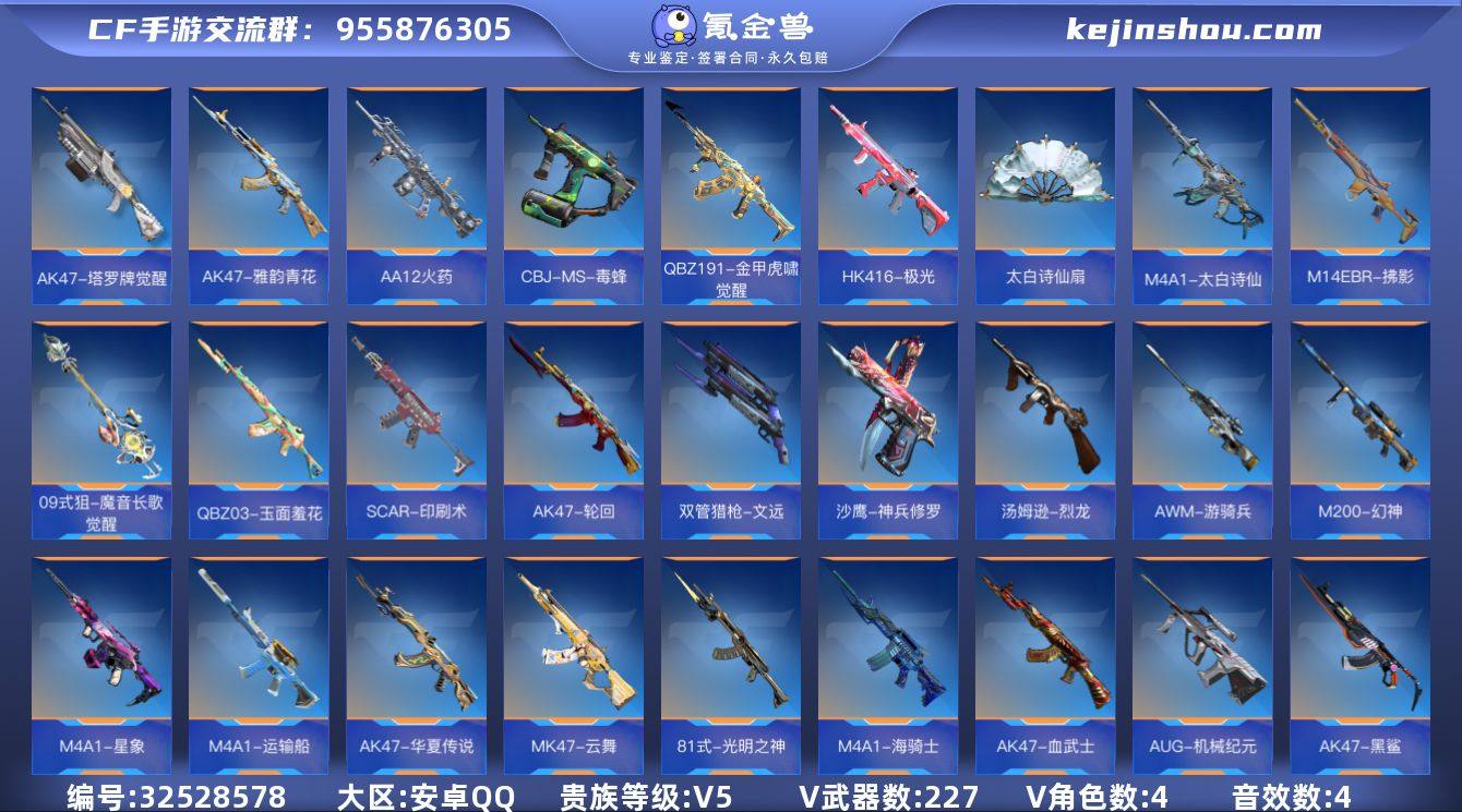 【YX115】星象/AWM游骑兵/王影/王尊/王兽/王誉/幻神-223英雄武器数【王者系列】:王者之影,王者之兽,王者之誉,王者之尊【热门武器】:81式-光明之神,M4A1-星象,M200-幻神,AWM-游骑兵【角色】:关小雨,炽天使-X,九安-X,刀锋-枪战王者【英雄武器】:AK47-无影,AK47-火麒麟*2,AK47-黑武士觉醒,AK47-血武士*2,AK47-华夏传说,AK47-黑鲨,AK47-木兰,AK47-轮回,AK47-雅韵青花,AK47-塔罗牌觉醒,AK47-谜城烟火*2,M4A1-雷神*2,M4A1-黑骑士*2,M4A1-黑龙,M4A1-死神*3,M4A1-星象,M4A1-海骑士,M4A1-运输船,M4A1-夏清,M4A1-太白诗仙,SCAR-幽暗骑士*2,SCAR-探星者,SCAR-印刷术*2,AN94-四凶觉醒,AUG-机械纪元,9A91-天神,M14EBR-拂影*2,M14EBR-葫芦山庄*2,AK12-天启*2,QBZ03-金色蔷薇,QBZ03-玉面羞花,HK416-极光,HK417-炎龙铠甲,81式-光明之神,G36-李星云,MK47-云舞,G3A3-衍神兵,QBZ97-浩瀚征途,QBZ191-金甲虎啸觉醒,QBZ191-封神榜,SBR-湮灭,AWM-天龙,AWM-游骑兵,AWM-裁决,AWM-天使,AWM-大湾溢彩,巴雷特-毁灭*5,巴雷特-冬灭觉醒,暗杀星,M200-幻神,09式狙-魔音长歌觉醒,98K-黑骑士,TAC-晴舞,VSK-94-金蚀,加特林-堡垒*3,刘易斯-血...