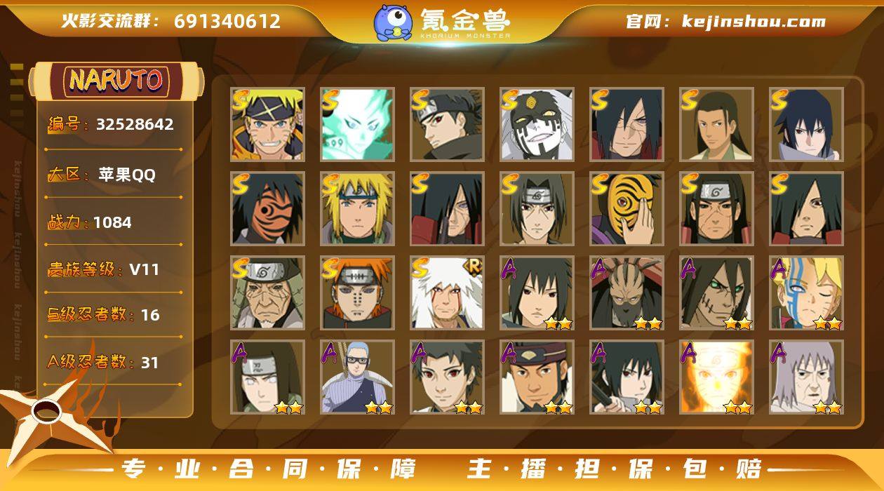 MHY4054【苹果Q V11 336区 17S 31A 19通灵】无二次包【区服】336【等级】149【S级数量】16【A级数量】31【B级数量】69【C级数量】60【S级】千手柱间「木叶创立」 大筒木舍人「最终章」 宇智波斑「秽土转生」 宇智波鼬「须佐能乎」 宇智波斑「秽土转生·解」 猿飞日斩「秽土转生」 千手柱间「秽土转生」 大筒木桃式 佩恩「天道」 宇智波斑 自来也「舞之豪杰」 漩涡鸣人·宇智波佐助 宇智波佐助「永恒万花筒」 宇智波止水「须佐能乎」 神秘面具男「红夜之刃」 波风水门【A级】日向宁次「忍界大战」 宇智波佐助「须佐能乎」 桃地再不斩「秽土转生」 巳月「仙人模式」 飞段 迈特凯 我爱罗「疾风传」 大蛇丸「晓」 宇智波鼬 土台「忍界大战」 秋道丁次「忍界大战」 飞段「死司凭血」 千代「近松十人卫」 我爱罗「忍界大战」 迈特凯「青春爆炸」 迪达拉 漩涡鸣人「九尾查克拉」 春野樱「百豪」 干柿鬼鲛 漩涡博人「桃式显现」 波风水门「新春限定」 长十郎「六代目水影」 猿飞阿斯玛 角都「秽土转生」 波风水门「青年」 宇智波止水 小南「神驹佑将」 蝎 旗木卡卡西「万花筒写轮眼」 宇智波泉奈 宇智波佐助「疾风传咒印」【B级】御手洗红豆 秋道丁次「疾风传」 春野樱「忍者少女」 月光...
