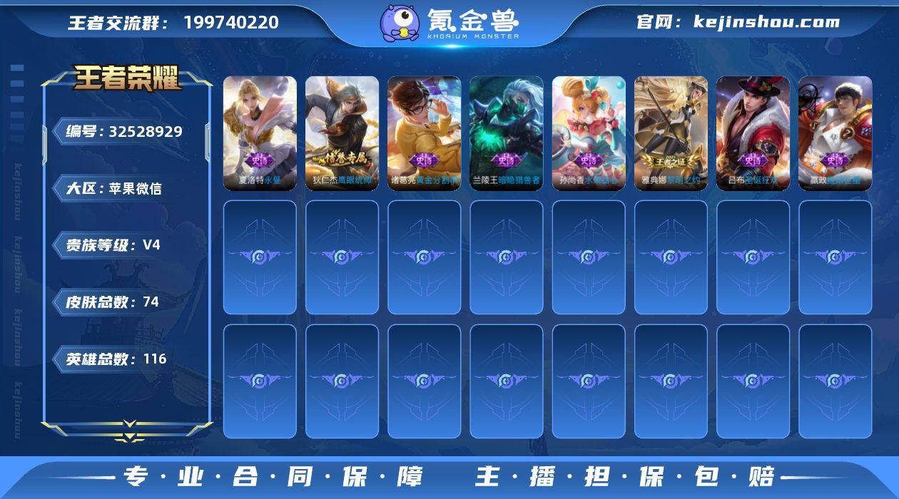 [17792941]V4 1传说 116英雄 74皮肤 可修改实名 女号