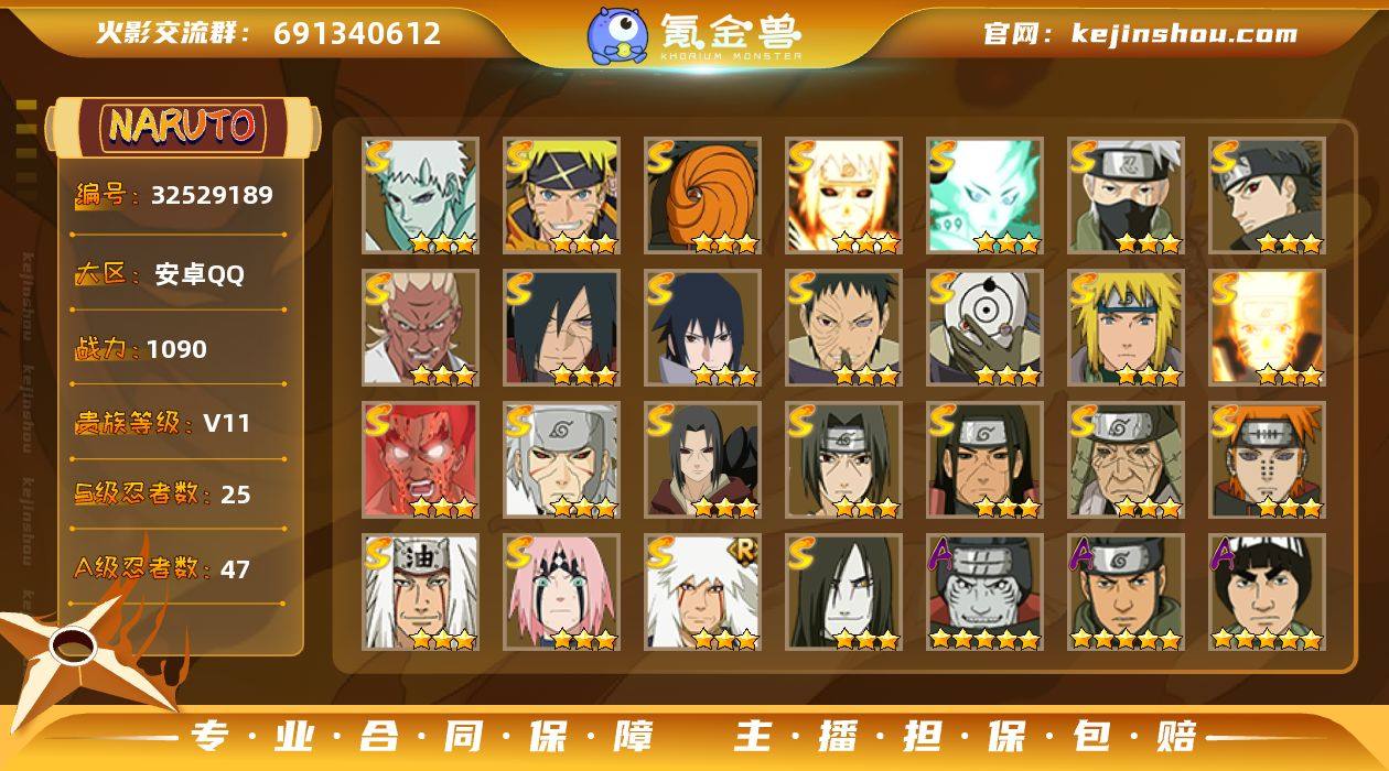 【性价比中配号 活动价】y7122 战力1090w 25s 47a 熊猫 万蛇 6个198a 大福袋剩余23天 25忍法帖已开62级 神驹小南时装 73片纲手 49片三代火影 60片创立斑