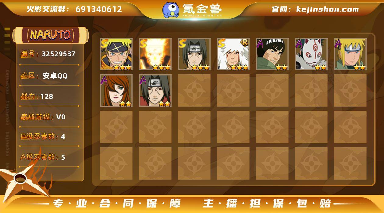 4S级忍者数-5A级忍者数 【S级忍者】:宇智波鼬「须佐能乎」(3星),自来也「舞之豪杰」(3星),漩涡鸣人「九喇嘛连结」(3星),漩涡鸣人·宇智波佐助(3星) 【A级忍者】:波风水门「青年」(2星),宇智波鼬(2星),照美冥「五代目水影」(2星),神秘面具男「忍者之路」(2星),迈特凯「青春爆炸」(2星)