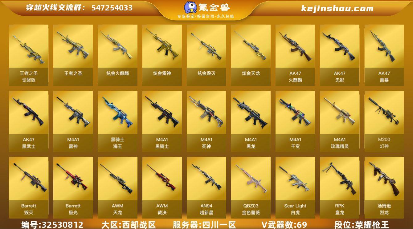 可二次实名 四川一区71v5王者4炫金可排位/会员6/第2赛季荣耀传说460豆/【雷暴套/M200幻神+幻神AG-CFPLS24冠军+幻神紫橙光效/M4A1-青龙/Scar Light-白虎/QBZ03-金色蔷薇/斯泰尔-蝴蝶/4把死亡之眼/2盘龙/2烈龙/4修罗/天神/USP-雷暴/4套雷暴雷/猫猫手套/生存之眼/】【AWM-昌龙-怀旧音效卡/死神-雪域霜狐-怀旧音效卡/黑骑士音效卡/毁灭音效卡/】【/雷神-荣耀之魄/屠龙-荣耀之锋/火麒麟-冠军之心/黑龙-冠军之武/雷神-R.LGD-CFPLS18冠军/毁灭-AG-CFPLS15冠军/毁灭-BEAN-2020MVP/QBZ03-AG-CFPLS19冠军/ScarLight-白虎-冠军之虎皮肤/黑骑士-白马银枪/雷神-烈虎皮肤/无影-神兵利器 皮肤/龙啸-巅峰荣耀 皮肤/裁决-巅峰荣耀皮肤/裁决-羽掣皮肤/雷神-宇航兔皮肤/战神-流金岁月皮肤/战神-粉色甜心皮肤/战神-紫绶金章皮肤/天龙-能量核心/修罗-能量核心/火麒麟-雷神/毁灭-星空/无影耀金皮肤/雷神-维纳斯皮肤/黑龙-能量核心/黑龙-暗月/火麒麟-心动糖果/极光-高能霹雳皮肤/无影-能量核心/修罗-星空/雷神-暗月/极光-能量核心/火麒麟-平天大圣/雷神-耀金皮肤/屠龙-春桃 皮肤/屠龙-彼岸花皮肤/M4A1-黑龙-361/火麒麟-CFSTAR/修罗-CFSTAR/天龙-CFSTAR/M4A1-千变-孔明皮肤/AK47-老兵传说皮肤/】【四防...