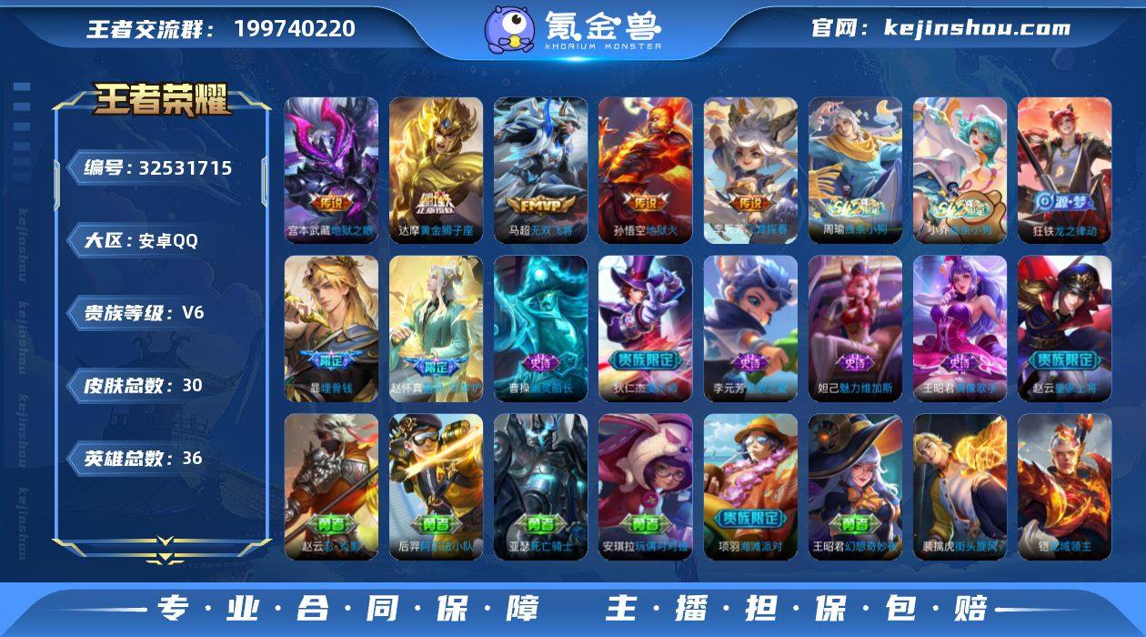 【XY865】贵族6/皮肤30/传说8/史诗10/英雄36/金标李元芳/云缨神骥越千峰/马超神骥逐星野/花木兰异界灵契/无双飞将/飞鸢探春/黄金狮子座/地狱之眼/地狱火/埋骨钱/皇家上将/魔术师/海滩派对/线条小狗-周瑜/线条小狗-小乔/龙之律动/器灵·浮梦炉/逐浪之夏/幽灵船长/魅力维加斯/偶像歌手/吕布舞狮寰/幻想奇妙夜/阿尔法小队/死亡骑士/玩偶对对碰/忍·炎影/幸存者/街头旋风/龙域领主/特种部队