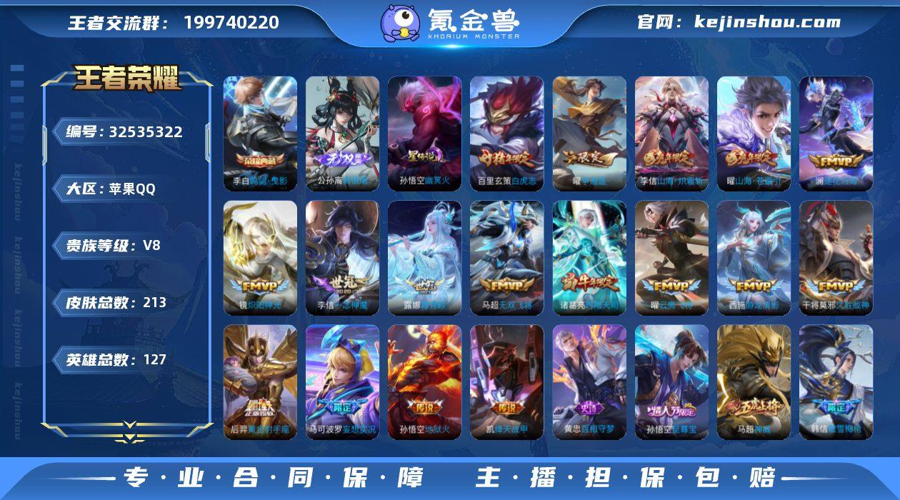 【极品带妹打野号·无相·离恨烟·鸣剑曳影·幽冥火·李逍遥·白虎志·时雨天司·踏浪归·神骥越千峰·神骥逐星野·愿照山河定·逐花归海·霜月吟·妄想实况·山海苍雷引·山海炽霜斩·无双飞将·游龙清影·炽阳神光·至尊宝·可二次】w20673-苹果Q-127英雄-213皮肤-3王者印记-178铭文-贵族积分6w【贵族8】【1典藏·2无双·1星传说·23传说·12按键】【因赛季更新游戏段付以上号为准!】 【英雄全皮】:孙权全皮 【荣耀典藏】:李白鸣剑曳影 【无双皮肤】:孙悟空无相,公孙离离恨烟 【星元皮肤】:孙悟空幽冥火 【传说皮肤】:韩信踏浪归,云缨神骥越千峰,马超神骥逐星野,司空震愿照山河定,桑启鸣野蒿,澜逐花归海,露娜霜月吟,马可波罗妄想实况,曜山海苍雷引,李信山海炽霜斩,马超无双飞将,西施游龙清影,曜李逍遥 ,诸葛亮时雨天司,铠绛天战甲,镜炽阳神光,虞姬启明星使,曜云鹰飞将,李信一念神魔,干将莫邪久胜战神,百里玄策白虎志,后羿黄金射手座,孙悟空地狱火 【限定皮肤】:公孙离离恨烟,暃埋骨钱,姜子牙天穹之誓,狄仁杰阴阳师,赵云皇家上将,墨子神迹守卫,孙尚香蔷薇恋人,鲁班七号狮舞东方,孙膑天狼运算者,元歌云间偶戏,元歌无心,夏侯惇朔风刀,曹操烛龙,马可波罗逐梦之...