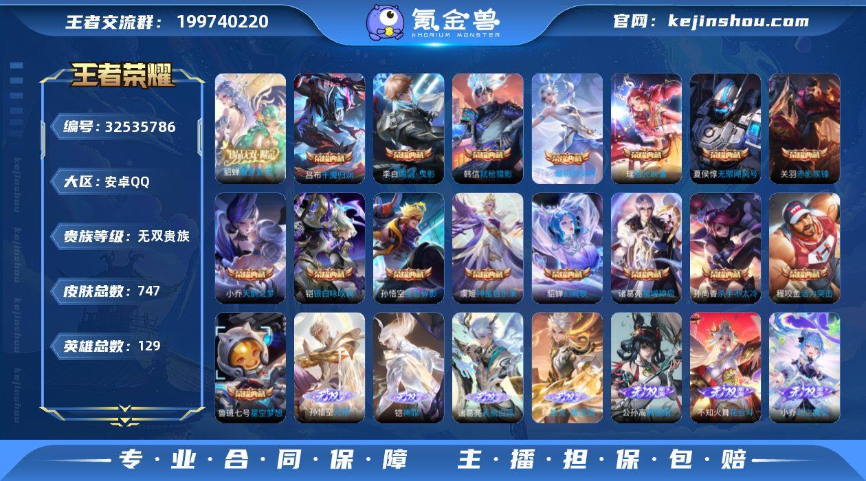 GT14735 安卓QQ 无双V10 747皮 17典藏13无双9珍品传说【8.6W流光积分 85按键6天幕 满级灵宝 游走31段】貂蝉珍品无双 16星元349限定132传说 金标太乙真人 4574星币 3327英雄碎片 2812皮肤碎片 4荣耀印记 营地号:1885490953 【珍品传说】怪盗基德,孙策时之奇旅,江户川柯南,器灵·落星盏,兔狲·蓬尾,黑崎一护,朽木白哉,酷洛米之心,大耳狗之梦, 【无 双】花合斗,韩信群星魔术团,真我赫兹瑶,时之魔女,青丘·九尾,碎月剑心,神器·明辉仪,离恨烟,甄姬雪境奇遇,器灵·螭龙剑,馥梦繁花,天机白泽,神罪,无相, 【荣耀典藏】赤影疾锋,全息碎影,鸣剑·曳影,星域神启,武则天,天鹅之梦,无限飓风号,活力突击,星空梦想,杀手不太冷,银·白咏叹调,幻阙歌,弑枪猎影,神鉴启示录,拾光映像,最初的交响,千魇归渊, 【星元皮肤】金色仲夏夜,幻海之心,幽冥之眼,幽冥火,未来机甲,零号雷霆,时之愿境,星际治安官,玉鸾吟,苍灵仙君,荆棘舞步,太华·红枫,岁雨灵司,幻舞叠翠,破晓神光,寅虎·焰心, 【热门限定】愿照·众生和,愿照·岁时盈,愿照·千秋盛,愿照·山河定,愿照·九州拓,愿照·福禄聚,器灵·浮梦炉,逐花归海,落雪白狼,凤求凰,至尊宝,乘龙·问璇玑,乘龙·淬吴钩,乘龙·铭钟鼎,乘龙·聚宝船,乘龙·忆丹青,白虎志,青龙志,朱雀志,...