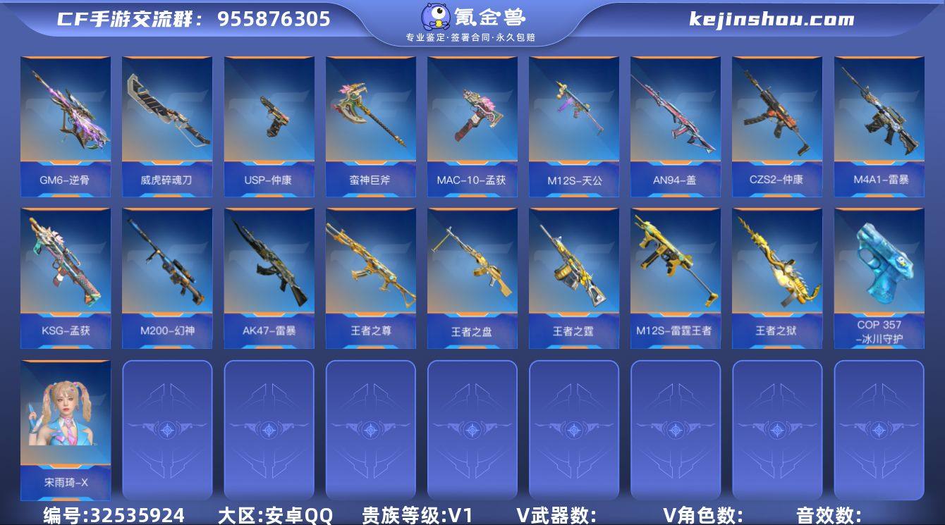172V高质量V1肝帝/安卓/实名:可修改,5王者+5三国+M200-幻神+COP🔥【AN94-盖,仲康套装,孟获套装,逆骨,天公】🔥【王尊,M12S-雷霆王者,生化;王霆,王狱,王盘,M4A1-雷暴,AK47-雷暴,炽芒蝶刃+5屠龙】🔥【宋雨琦-X,显血戒指,LV.103级元首】🔥172个不重复的V➕220万化【具体的枪械详情以截图为准、截图展示段位不代表实际段位,如赛季更新等不可抗拒因素发生变化、时限道具和各种活动不保证所剩时间和是否参与过】🔥9位数Q,安全保证金平台合作商,售候无忧!