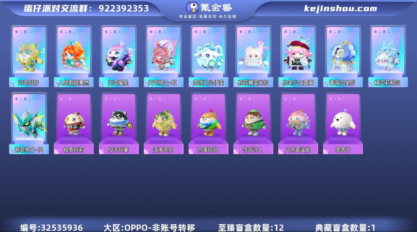 账号类型: 手机账号 段位: 一阶鹌鹑蛋 热门装扮: 闪电阿存,极真阿莉,投手阿豪,菠萝苏苏,断罪骑士-岚,狗蛋阿甜,蔷薇白皇后,八音盒温妮,圆圆子,饶舌诗人,精灵莉斯尔,雪原之心伊芙,天穹骑士-虹,主唱曜星,人鱼歌姬赛然,执笔少女露离,棉花糖芙米拉