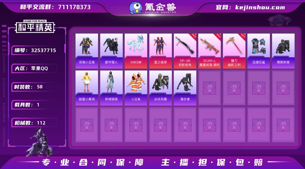 DSH2410【1载具6特 2粉都市猎人 深海小丑鱼 小丑鱼】苹果手Q-1载具-2粉装-6特效枪-58套装-112枪皮-4王牌印记-超级王牌1星-28564热力值