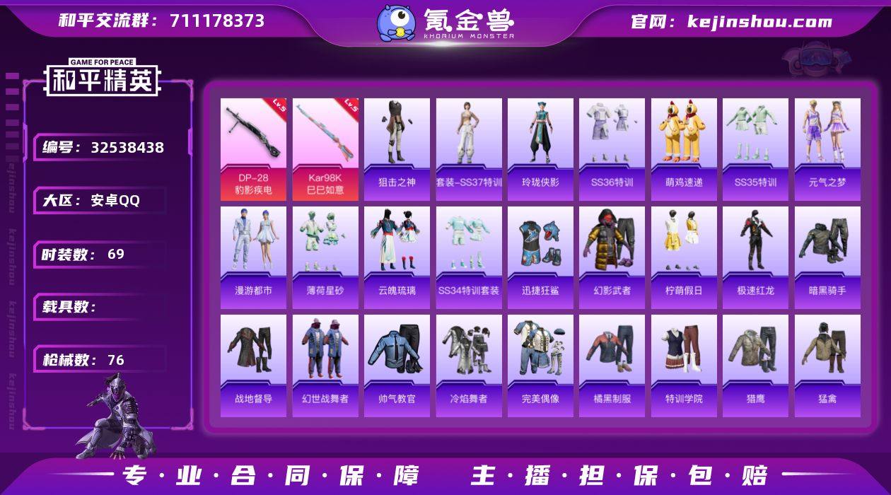 "HX1575 有二次 安卓Q-段位星钻 49级 2印记 69套装76枪皮 【2特效枪】 DP-28-豹影疾电 5级 Kar98K-巳巳如意 5级 【热门】 炫彩糖果 急速光影 元气之梦 薄荷星砂 破蛋小黄鸡 迅捷狂鲨 缤纷果语 旭日情侣 【1飞行器】 炫彩糖果飞行器 "