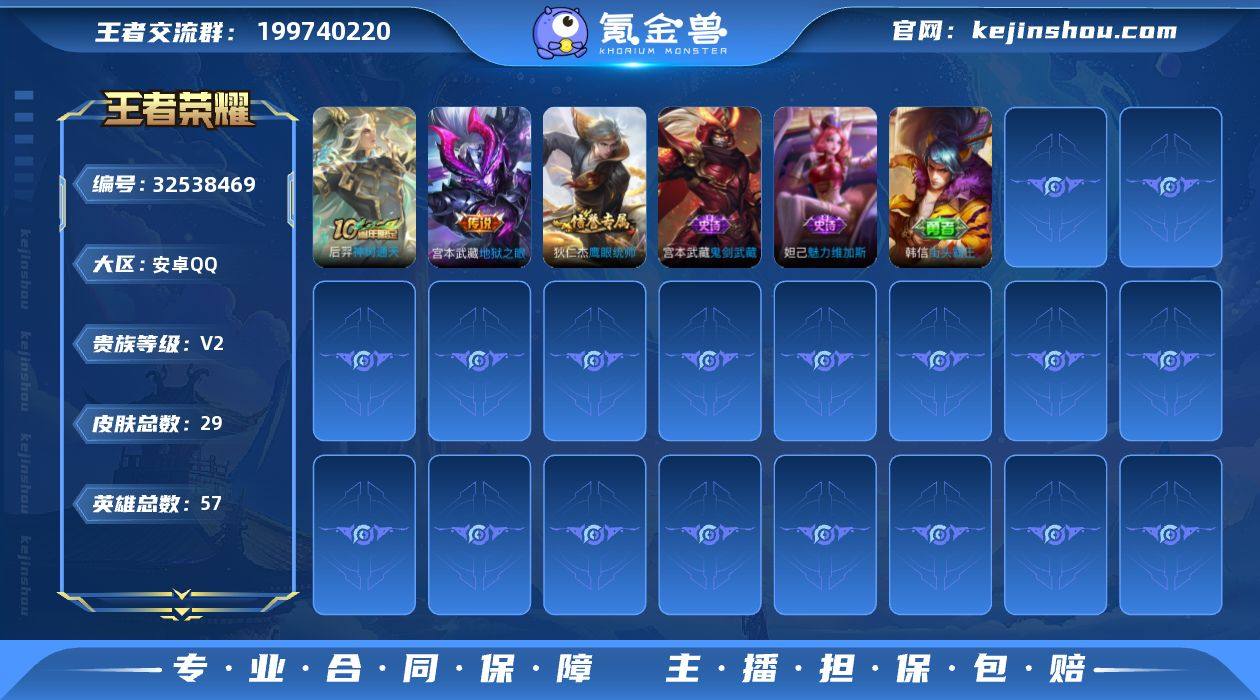 -V2-永恒钻石I-57英雄-29皮肤-2传说-3史诗 【稀有英雄】 不知火舞 橘右京 夏洛特 【传说皮肤】 地狱之眼 神树通天 【限定皮肤】 地狱之眼 【史诗皮肤】 鬼剑武藏 魅力维加斯 鹰眼统帅 【勇者皮肤】 拳王 汉昭烈帝 黄金武士 死亡骑士 万象初新 教廷特使 街头霸王 白执事 【其他皮肤】 潮流仙人 三太子 超能战警 第七人偶 万圣前夜 星航指挥官 激情绿茵 锦衣卫 幸存者 孤猎