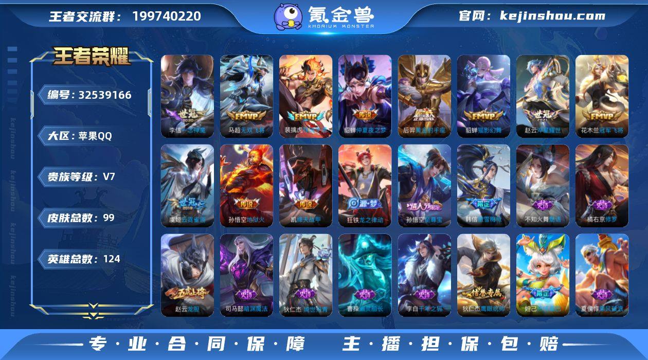 [17802643]V7 13传说 124英雄 99皮肤 可修改实名 男号 【英雄全皮】蚩奼全皮,大禹全皮 【稀有英雄】大司命,嬴政(始皇帝),韩信(韩跳跳),夏洛特(夏师傅),艾琳,橘右京(橘子),娜可露露(鸟人),不知火舞,赵云,金蝉(唐僧),戈娅 【传说皮】神骥·逐星野,祥瑞亨通,黄金射手座,地狱火,仲夏夜之梦(大飞蛾),末日机甲-孙尚香(绿蚂蚱),云霓雀翎,一念神魔,淬星耀世,冠军飞将,猫影幻舞,无双飞将,绛天战甲(鸡嘴战神) 【珍宝阁皮】锁墨魂 【赛季/战令皮】古海寻踪(s33),探海日志(s32),天穹祈灯(s34),千军破阵(s25),沙漠行僧(s26),金庭之子(s27),云中旅人(s29) 【史诗皮】星界特工,绮世丹青,线条小狗-周瑜,线条小狗-小乔,光弋星穹,龙之律动,紫霞仙子,特工魅影,千年之狐,匿光侦查者,真我赫兹(百里守约),冰冠公主,龙骑士(小龙虾),魅语,末日机甲-吕布,修罗,摇滚巨星,幽灵船长,暗渊魔法,乘风破浪,逐浪之夏,金属风暴,原初追逐者,鹰眼统帅,魅力维加斯,无心 【限定皮】至尊宝,傲雪梅枪,五谷丰年,龙胆,李小龙,热情桑巴 【普通皮】街头霸王,荣光之誓,往忆晖光,鹤鸣心笺,溯影追猎,苍云破阵,极光幻客,逆浪荇歌,鬼谷子天穹祈灯(S34),完美运算,妲己灵卜魔法,万事如意,龙腾万里,海滩丽影,海滩派对,皇家上将,魔术...