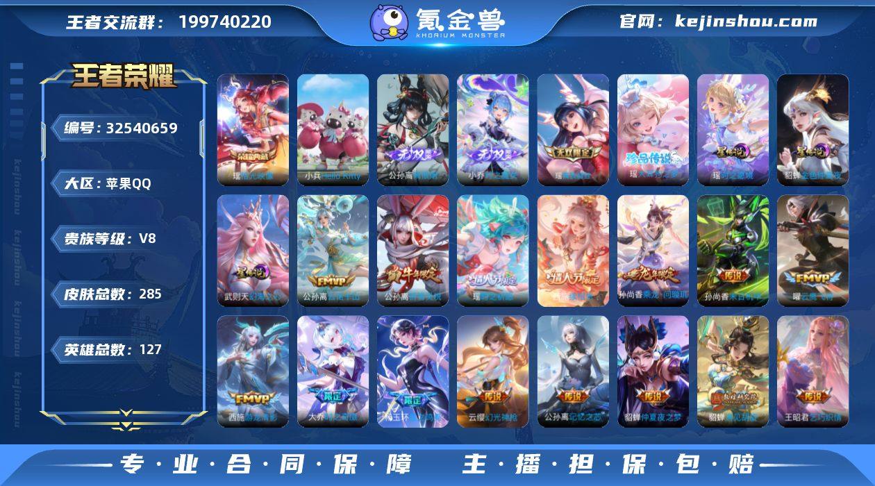 全皮瑶·紫瑶·九霄神辉·离恨烟·时之魔女·金色仲夏夜·幻海之心·神骥鸣幻洲·愿照千秋盛·愿照众生和·乘龙问璇玑·祈雪灵祝·小兵Hello Kitty·花朝如约天幕·可二次】w20589-苹果Q-127英雄-285皮肤-14王者印记-120铭文-贵族积分8w【贵族8】【2典藏·3无双·1珍品·3星传说·24传说·1天幕·17按键】【因赛季更新游戏段付以上号为准!】 【英雄全皮】:瑶全皮 【荣耀典藏】:花木兰九霄神辉,瑶拾光映像 【无双皮肤】:公孙离离恨烟,小乔时之魔女,瑶真我赫兹 【珍品传说】:瑶大耳狗之梦 【星元皮肤】:瑶时之愿境,貂蝉金色仲夏夜,武则天幻海之心 【天幕】:花朝如约天幕 【小兵皮肤】:小兵Hello Kitty 【传说皮肤】:朵莉亚神骥鸣幻洲,公孙离云诺千山,西施续相思,杨玉环星之鸣奏,女娲愿照千秋盛,妲己愿照众生和,蔡文姬愿照福禄聚,云缨幻光神枪,桑启鸣野蒿,孙尚香乘龙问璇玑,大乔时之奇旅,张飞百相守梦,公孙离记忆之芯,瑶时之祈愿,貂蝉遇见胡旋,王昭君乞巧织情,西施游龙清影,公孙离祈雪灵祝,虞姬启明星使,曜云鹰飞将,张良黄金白羊座,梦奇胖达荣荣,貂蝉仲夏夜之梦,孙尚香末日机甲 【限定皮肤】:公孙离离恨烟,蒙犽顽岩魄,蔡文姬夏日便利店,虞姬夏日便利店,姜子...