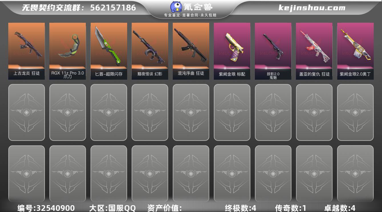 【英雄】:炼狱,维斯,暮蝶,钛狐,壹决,铁臂,捷风,雷兹,幽影,不死鸟,贤者,猎枭,蝰蛇,零,芮娜,奇乐,尚勃勒,霓虹,斯凯,夜露,星礈,K/O,海神,盖可,黑梦,钢锁【近战武器】:近战武器-RGX 11z Pro//3.0 爪刀,近战武器-超限闪存 匕首【狂徒】:狂徒-混沌序曲,狂徒-上古龙炎,狂徒-盖亚的复仇,狂徒-弧光异彩【幻影】:幻影-黯夜怪谈,幻影-超限闪存【戍卫】:戍卫-彩梦之城,戍卫-浮光跃金【獠犬】:獠犬-弧光异彩,獠犬-模拟赫兹【冥驹】:冥驹-模拟赫兹【飞将】:飞将-信手涂鸦【莽侠】:莽侠-超限闪存【战神】:战神-浮光跃金【奥丁】:奥丁-紫阙金琅//2.0,奥丁-信手涂鸦【雄鹿】:雄鹿-彩梦之城,雄鹿-模拟赫兹【骇灵】:骇灵-无限竞技,骇灵-浮光跃金,骇灵-信手涂鸦【蜂刺】:蜂刺-超限闪存,蜂刺-弧光异彩【标配】:标配-紫阙金琅,标配-彩梦之城,标配-浮光跃金【正义】:正义-超限闪存,正义-纳米打击【鬼魅】:鬼魅-掠影//2.0,鬼魅-模拟赫兹,鬼魅-信手涂鸦【卡面】:终章:激斗汉堡 卡面,进入射程 卡面,《双城之战》拥抱 卡面,精灵大战 卡面,欢迎来到底城 卡面,南瓜盛典 卡面,唱片的故事 卡面,钢弓与箭弦 卡面,排除故障 卡面,战术桌...