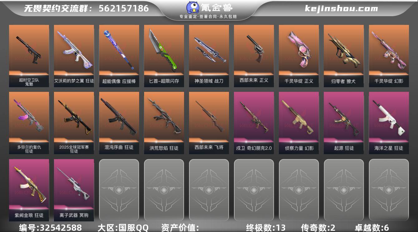【NF211】【英雄】:幻棱,炼狱,维斯,暮蝶,钛狐,壹决,铁臂,捷风,雷兹,幽影,不死鸟,贤者,猎枭,蝰蛇,零,芮娜,奇乐,尚勃勒,霓虹,斯凯,夜露,星礈,K/O,海神,盖可,黑梦,钢锁 【近战武器】:近战武器-穿花蝴蝶,近战武器-超能偶像 应援棒,近战武器-超限闪存 匕首,近战武器-神圣领域 战刀 【狂徒】:狂徒-2025全球冠军赛,狂徒-洪荒怒焰,狂徒-混沌序曲,狂徒-多弥尔的复仇,狂徒-艾沃莉的梦之翼,狂徒-海洋之星,狂徒-起源,狂徒-紫阙金琅,狂徒-超能偶像 【幻影】:幻影-千灵华绽,幻影-侦察力量,幻影-超限闪存,幻影-神圣领域,幻影-聚合之力 【戍卫】:戍卫-奇幻朋克//2.0,戍卫-超能偶像,戍卫-浮光跃金,戍卫-月球哨兵 【獠犬】:獠犬-归零者,獠犬-神圣领域,獠犬-采蜜小蜂队,獠犬-模拟赫兹 【冥驹】:冥驹-离子武器,冥驹-模拟赫兹,冥驹-星云暗涌 【飞将】:飞将-西部未来,飞将-聚合之力 【莽侠】:莽侠-超限闪存,莽侠-月球哨兵 【战神】:战神-神圣领域,战神-采蜜小蜂队,战神-浮光跃金 【判官】:判官-超能偶像,判官-采蜜小蜂队 【雄鹿】:雄鹿-模拟赫兹,雄鹿-月球哨兵 【骇灵】:骇灵-浮光跃金,骇灵-星云暗涌 【蜂刺】:蜂刺-超限闪存...