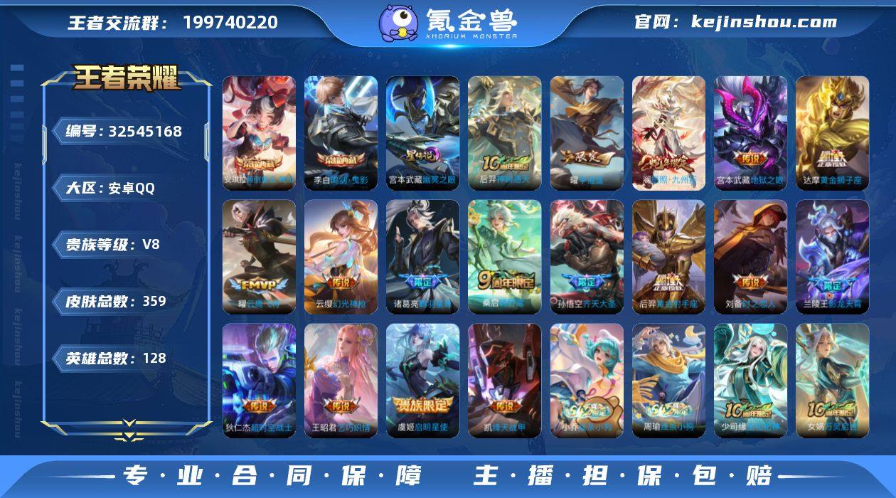 王者19842,3689紫星币,安卓Q-V8-永恒钻石III段位-128英雄-359皮肤-2典藏皮肤-17传说-120史诗 【英雄全皮】:刘禅全皮,孙权全皮,敖隐全皮,空空儿全皮 【荣耀典藏】:李白鸣剑曳影,安琪拉颠倒童话魔镜 【传说皮肤】:后羿神树通天,澜愿照九州拓,云缨幻光神枪,桑启鸣野蒿,兰陵王影龙天霄,诸葛亮鹤羽星尊,孙悟空齐天大圣,王昭君乞巧织情,曜李逍遥 ,铠绛天战甲,虞姬启明星使,曜云鹰飞将,刘备时之恋人,达摩黄金狮子座,后羿黄金射手座,宫本武藏地狱之眼,狄仁杰超时空战士 【限定皮肤】:蒙犽顽岩魄,大乔绒语心约,姜子牙天穹之誓,狄仁杰阴阳师,赵云皇家上将,墨子神迹守卫,嬴政优雅恋人,孙尚香蔷薇恋人,庄周高山流水,阿轲迷踪丽影,钟无艳超时空战士,扁鹊奇幻香踪,白起夜都怪侠,芈月幻夜卜梦,吕布猎兽之王,元歌云间偶戏,元歌无心,甄姬落雪兰心,马可波罗暗影游猎,狄仁杰魔术师,狄仁杰万华元夜,达摩星际陆战队,达摩沙漠行僧,项羽海滩派对,老夫子醍醐杖,老夫子航海奇遇记,程咬金演武夺筹,刘邦夺宝奇兵,韩信傲雪梅枪,王昭君午后时光,兰陵王影龙天霄,兰陵王金庭之子,花木兰默契交锋,亚瑟潮玩骑士王,孙悟空至尊宝,孙悟空大圣娶亲,...