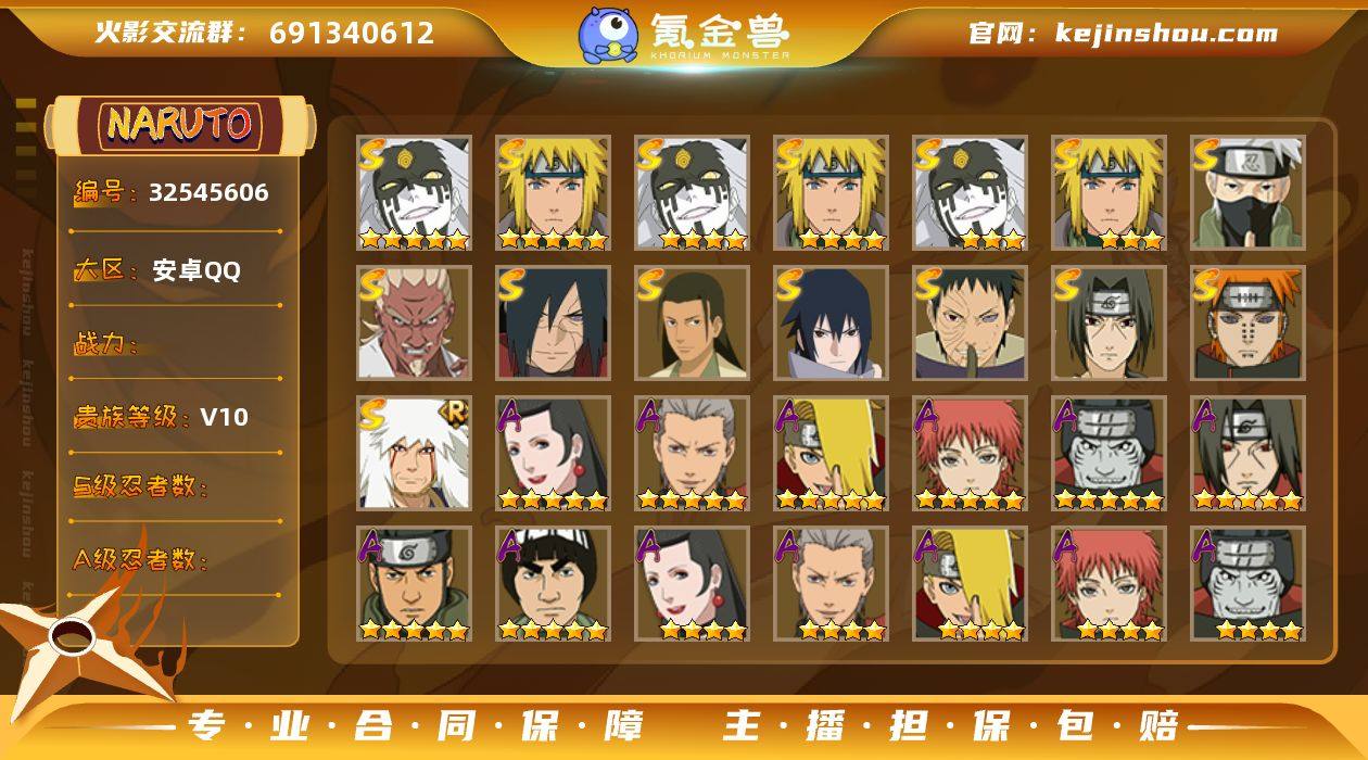 MLY757236 650万战力V10丨忍界大战宇智波带土,木叶创立千手柱间,秽土转生解宇智波斑,忍战艾,舞之豪杰自来也,旗木卡卡西【须佐能乎】,波风水门,宇智波鼬【须佐能乎】,天道佩恩,永恒万花筒宇智波佐助,大筒木桃式,十周年鸣佐丨日向雏田最终章,宇智波泉奈,六代目长十郎,神秘面具男(面麻),死司飞段,漩涡博人桃式,火之意志卑留呼,不缘,忍战丁次,忍界宁次,忍战李,秽土迪达拉,千代,迈特凯,宇智波鼬,干柿鬼鲛,疾风我爱罗,迪达拉,蝎,飞段,猿飞阿斯玛,万花筒佐助,青年水门,须佐佐助丨蛞蝓,蛤蟆龙,砂之守鹤