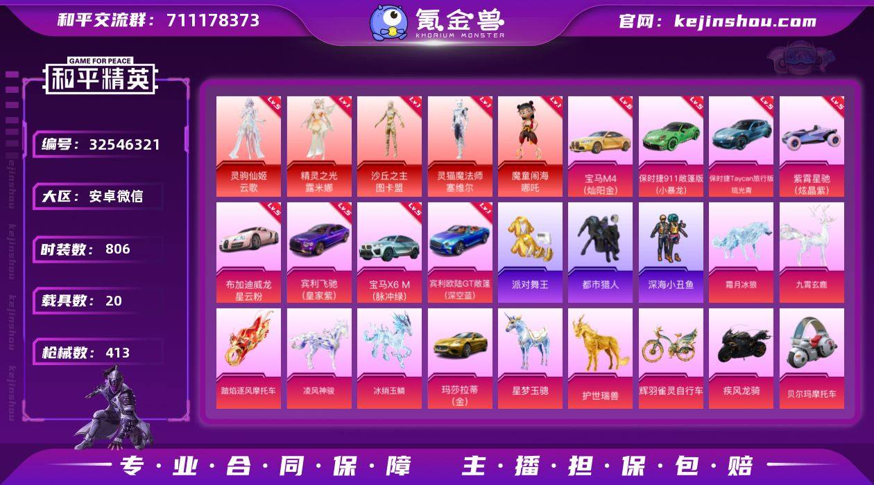 双字嚗菊120级收藏家,多神装,身法套,满级3币车,满级9级枪,双人飞行器,180天特权卡。 连体王者V8,多个万战,荣耀典藏。