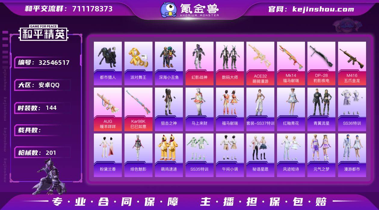 【0载具 6特效枪 2粉装 201枪皮 144套装】7王牌2卓越1传奇1绝世 满级五爪金龙 小雾神身法号 地铁满天赋 都市猎人,浪漫天命,派对舞王,雪山精英,暗影哥特,深海小丑鱼,-幻影战神,-数码大师,套装-小丑鱼,角色-赛罗奥特曼 ACE32-萌骑漫游,M416-五爪金龙,AUG-暖羊咩咩,Kar98K-巳巳如意,Mk14-福马献瑞,DP-28-豹影疾电 挂凌工作青 df60-91,编号:WPFOO44