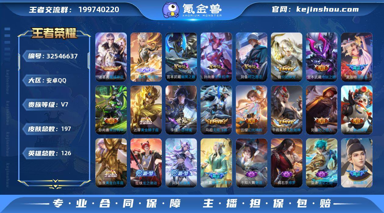 .24w金标达摩·1.2w战力马超·金标万战宫本·万战司空震·金标准万战玄策·万战镜·器灵螭龙剑·星域神启·浮生妄·愿照九州拓·无双飞将·炽阳神光·无二次包过】w20717-安卓Q-126英雄-197皮肤-13王者印记-230铭文-贵族积分2w【贵族7】【1典藏·1无双·3星传说·15传说·11按键】【因赛季更新游戏段付以上号为准!】 【英雄全皮】:孙权全皮,夏洛特全皮,戈娅全皮,空空儿全皮 【荣耀典藏】:诸葛亮星域神启 【无双皮肤】:曜器灵螭龙剑 【星元皮肤】:刘备时之思念,孙尚香未来机甲,宫本武藏幽冥之眼 【传说皮肤】:后羿神树通天,澜愿照九州拓,云缨幻光神枪,桑启鸣野蒿,夏洛特浮生妄,马超无双飞将,镜炽阳神光,李信一念神魔,刘备时之恋人,张良黄金白羊座,干将莫邪久胜战神,达摩黄金狮子座,梦奇胖达荣荣,孙尚香末日机甲,宫本武藏地狱之眼 【限定皮肤】:蒙犽顽岩魄,姜子牙天穹之誓,李白谪仙醉月,狄仁杰阴阳师,赵云皇家上将,吕布猎兽之王,马可波罗暗影游猎,狄仁杰魔术师,项羽海滩派对,李元芳银河之约,李元芳云中旅人,杨玉环遇见飞天,鬼谷子五谷丰年,百里玄策原初追逐者,梦奇顽趣,裴擒虎擒涛扼浪,云中君纤云弄巧,嫦娥暖冬兔眠,西施玲珑珍味,鲁班大师探海日志...