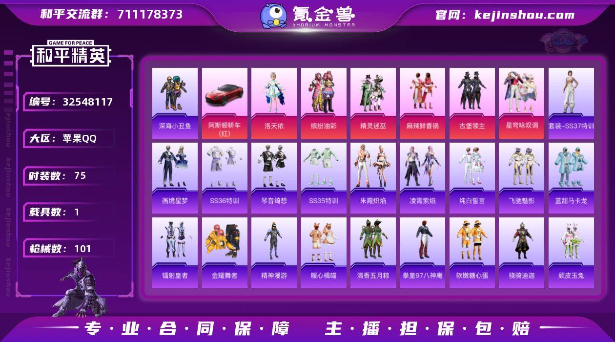 【和平精英】7粉装,5特效枪,1载具,历史最高段位:卓越王牌14星 王牌印记8次 热力值:60171,142套装,188枪械,210装备,95战备;套装:套装-古堡领主,套装-梦幻火箭,套装-精灵迷巫,套装-麻辣鲜香锅,套装-缤纷油彩,角色-洛天依,套装-星穹咏叹调,套装-白色伏地魔,套装-黑色伏地魔,套装-骑行爱好者,套装-竞技名士,套装-深蓝色名流,套装-酒红色名流,套装-湖蓝色名流,套装-黄色名流,套装-长空猛禽,套装-竞技勇士朋克,套装-蓝色守护者,套装-战地菁英,套装-贵族骑装,套装-战地督导,套装-特殊使命,套装-街舞达人,套装-灰色格斗者,套装-甜蜜告白,套装-春日漫步,套装-完美偶像,套装-幻影武者,套装-蓝彩潮人,套装-耀眼新星,套装-竞技达人朋克,套装-都市漫游者,套装-野性战心,套装-破晓战魂,套装-森林游猎者,套装-沙漠兵团,套装-丛林猎人,套装-SS2特训,套装-雪山精英,套装-传奇侦探,套装-幻世战舞者,套装-金耀舞者,套装-蓝调潮人,套装-深海小丑鱼,套装-青涩时光,套装-缤纷果语,套装-格斗先锋,套装-海上生明月,套装-破蛋小黄鸡,套装-疯狂小兔子,套装-深蓝冒险家,套装-迷域探索者,套装-SS5特训,套装-红酒骑士,套装-浪漫波比,套装-...