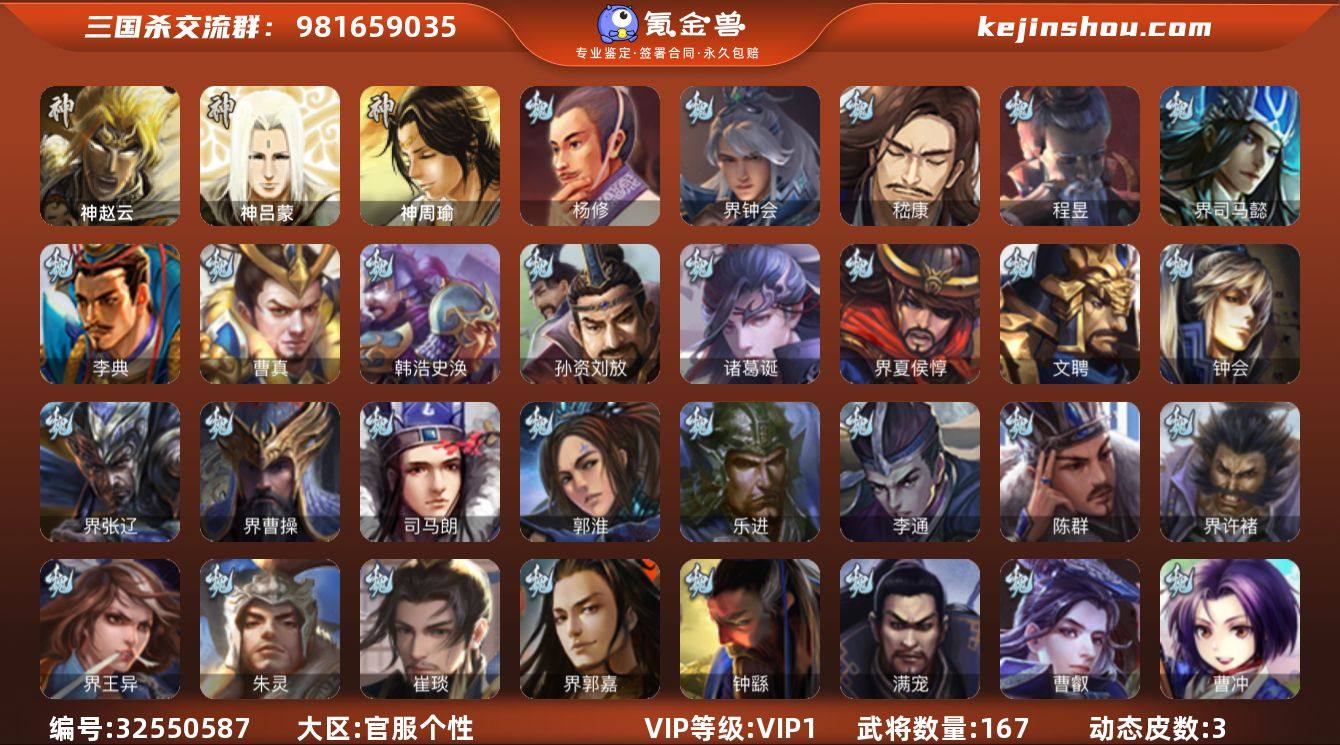 9史诗中军,7.4万豆,真动态谋吕布,神赵云,界钟会,沙摩柯,赵襄,嵇康,杨修,左慈,程昱9史诗,神吕蒙,神周瑜,甘夫人,崔琰,谋卢植,张布,孙翊,界朱治,濮阳兴,刘巴,金皮界王异,界马超,界刘表,刘琦167将,国战61将,满级活树