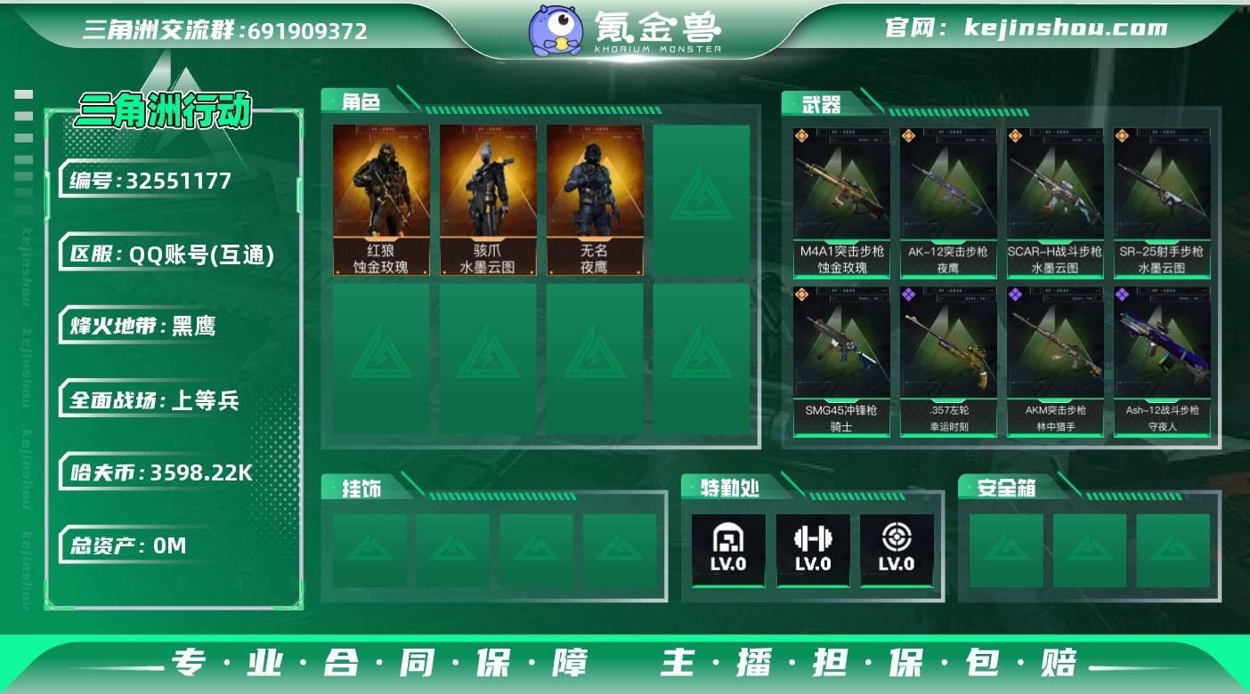 12402|精品脱坑号 总资产76.5M 流动资产66.2M 刀皮信条 蚀金 露娜黑天际线 水墨 免费送王者 安卓QQ 1典藏 1珍品传说 沧流箭 10传说 神骥·越千峰 神骥·聚万邦 173皮QQ区 哈夫币:3598220 干员外观数:8 近战数:2 典藏数:13 枪械数:291 载具数:27 烽火地带等级:60 全面战场等级:35 烽火地带段位:黑鹰 全面战场段位:上等兵 特勤处:技术中心Lv.3|工作台Lv.3|制药台Lv.3|防具台Lv.3 捆绑包:悠然茶歇捆绑包|缄花捆绑包|夜莺捆绑包|鹅鸭杀捆绑包|特斯拉线圈捆绑包|捞点薯条捆绑包 干员外观:露娜-黑·天际线|骇爪-水墨云图|红狼-蚀金玫瑰|露娜-金牌射手|乌鲁鲁-荒原猎手|深蓝-不破誓约|红狼-电锯惊魂|无名-夜鹰 近战:信条|黑鹰 枪械:Vector冲锋枪-夜莺|MK47突击步枪-悠然茶歇|KC17突击步枪-电锯惊魂|腾龙突击步枪-马年祥瑞|腾龙突击步枪-捞点薯条|CAR-15突击步枪-阿米娅|SCAR-H战斗步枪-水墨云图|SCAR-H战斗步枪-启航|AK-12突击步枪-特斯拉线圈|AK-12突击步枪-夜鹰|SG552突击步枪-运动员|AUG突击步枪-悠然茶歇|ASh-12战斗步枪-鹅鸭杀|M4A1突击步枪-蚀金玫瑰|M4A1突击步枪-阿米娅|MK4冲锋枪-夜莺|QCQ171冲锋枪-鹅鸭杀|勇士冲锋枪-能天使·午夜邮差|SR-3M紧凑突击步枪-特斯拉线圈|SM...