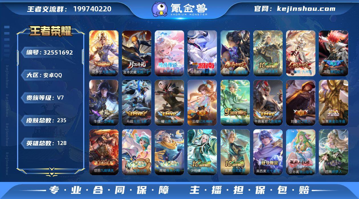 【特价出售】安卓q-V-235皮肤1典藏3珍品传说12传说 【全皮英雄】 刘邦全皮 影全皮 【典藏】 九霄神辉 【珍品传说】 黑崎一护 大耳狗之梦 怪盗基德 【传说】 马超琥珀纪元 神骥逐星野 神树通天 幻光神枪 愿照九州拓 鸣野蒿 无双飞将 云鹰飞将 久胜战神 一念神魔 黄金白羊座 时之恋人男 【热门】万灵启世 巫礼祀神 涂山容容 谪仙醉月 飞衡 逐霄之志 孙行者 朔望之晖 冰冠公主 暗影游猎 原初追逐者 云间偶戏 玫瑰异探 织梦人 黄忠百相守梦 瑰影绮梦 器灵浮梦炉 陌上桑 星界特工 炽弈燎原 群星魔术团上官婉儿 天秀启明 水晶猎龙者 金属风暴 热力回旋 曙光守护者 青蛇 妄想食味 逐浪之夏 魅语 千年之狐 紫霞仙子 功夫厨神 圣诞恋歌 幽灵船长 乘风破浪 赏金猎手 节奏热浪 绅士熊喵 偶像歌手 街头霸王 暗渊魔法 摇滚巨星 鬼剑武藏 德古拉伯爵 冰雪圆舞曲 青焰无极 苍威无极 克喵 群星魔术团程咬金 女仆咖啡 丁香结 皇家上将 魅力维加斯 探海日志 水果甜心 蔬乡物语鲁班 天穹祈灯 无心 顽岩魄 夏日便利店蔡文姬 乱世虎臣 驯魔猎人 鹰眼统帅 魔术师 128英雄-营地ID:1735685502