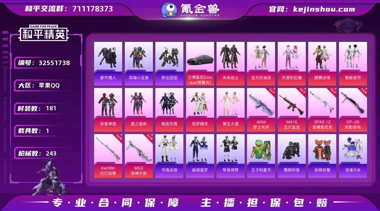 都市眼罩苹果 手Q-10粉装-10特效枪-1载具-3粉色飞行器-82170热力值-17王牌印记-181套装-243枪皮 【热门品类】:套装-浪漫天命,套装-都市猎人,套装-深海小丑鱼,套装-胖达团团,套装-忍者信条,套装-龟仙人,套装-暗影哥特 【粉色套装】:粉装-未来战士,粉装-宝贝奶油派,粉装-天使彩虹糖,粉装-蝶舞迷情,粉装-智能音符,粉装-放客神游,粉装-星之彼岸,粉装-暗夜玫瑰,粉装-筑梦精灵,粉装-第五大道 【粉色枪皮等级】:AKM-梦之光华(七级),M416-五爪金龙(七级),AKS-74U-森灵之息(五级),Kar98K-巳巳如意(四级),Mk14-福马献瑞(五级),AA12-G-萌骑幻想(一级),SPAS-12-音爆索尼克(七级),DP-28-豹影疾电(四级),MG3-洛神天依(四级),信号枪-金乌曜日(二级) 【粉色载具】:兰博基尼Estoque(银翼灰) 【粉色枪皮】:AKM-梦之光华,M416-五爪金龙,AKS-74U-森灵之息,Kar98K-巳巳如意,Mk14-福马献瑞,AA12-G-萌骑幻想,SPAS-12-音爆索尼克,DP-28-豹影疾电,MG3-洛神天依,信号枪-金乌曜日 【粉色飞行器】:炫彩糖果飞行器,纯梦嫁纱飞行翼 【粉色降落伞】:极限特训降落伞,幻影战神降落伞,粉色回忆降落伞,凝视深渊降落伞,甜心宝贝降落伞,春暖花开降落伞,香水柠檬降...