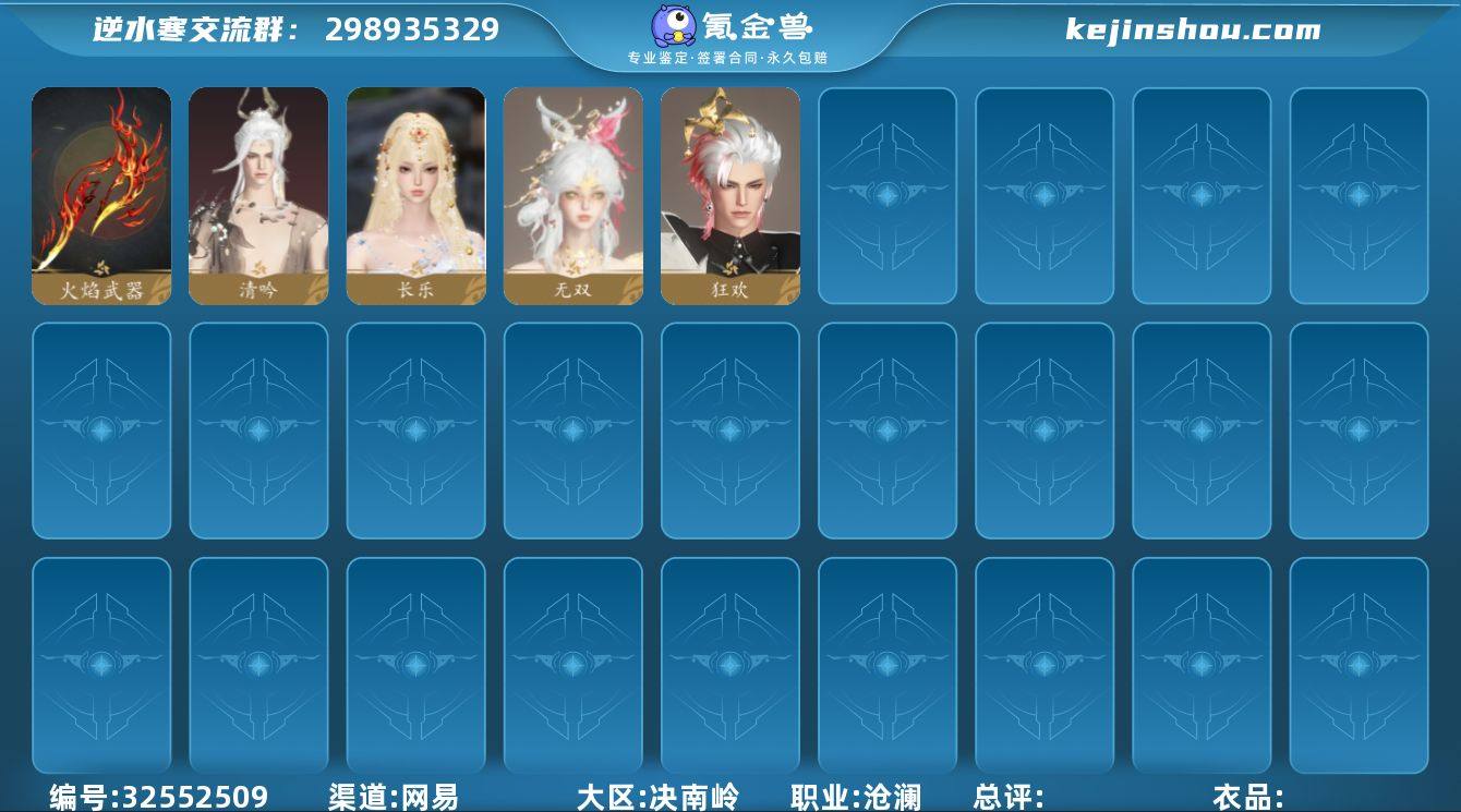 【区服】 沧海月明 【充值称号】 凭栏听雨 【已用天赏石】 5 【天赏发型】 清吟, 长乐, 狂欢, 无双 【天赏外观】 火焰武器 【商城外观】 青羽惊梦, 夜雪闻梅, 司玄镇天, 天离渊青, 神戬天威, 珊枝琢浪, 朝歌旧梦, 玲珑灼火, 诗剑纵歌, 千星咏叹, 灵珠海羽, 闻鹤九皋, 跃动心芒, 琼林萧瑟, 蝎影度月, 灼金喵影, 云腾游雾, 福禄金刚, 侠影流霜, 幻梦巡礼, 狼原灰骑, 灵语星彩, 暮夜陷落, 凤亭骁野, 刑天铠甲, 川峦游墨, 晴岸涛吟, 帝皇铠甲, 玄喵夜行, 星宫遐音, 青林雀舞, 开阳执戈, 紫微御宵, 衣香鬓影, 混天焚莲, 逆鳞浊日, 金祷颂晖, 金粉绮梦, 烽火浮生, 醉墨狂歌, 白羽武器 【祥瑞坐骑】 风行·谦谦有礼, 金冠鼠鼠, 纵风甲车·玄, 假面, 风行·江湖景, 骋风叱焰, 风行·世间情, 抟乌镇妖, 风行·万灯明, 贺岁喜狮, 云螭·庆舞迎春, 龙衔瑞焰, 伯力, 咩郎, 瓜皮, 墨流云·玄色, 奔虹赤, 玉霄飞练, 帝皇驹, 火刑驹, 梅香团子, 绒绒夜, 隐云涧 【武器环身】 谪仙雷剑