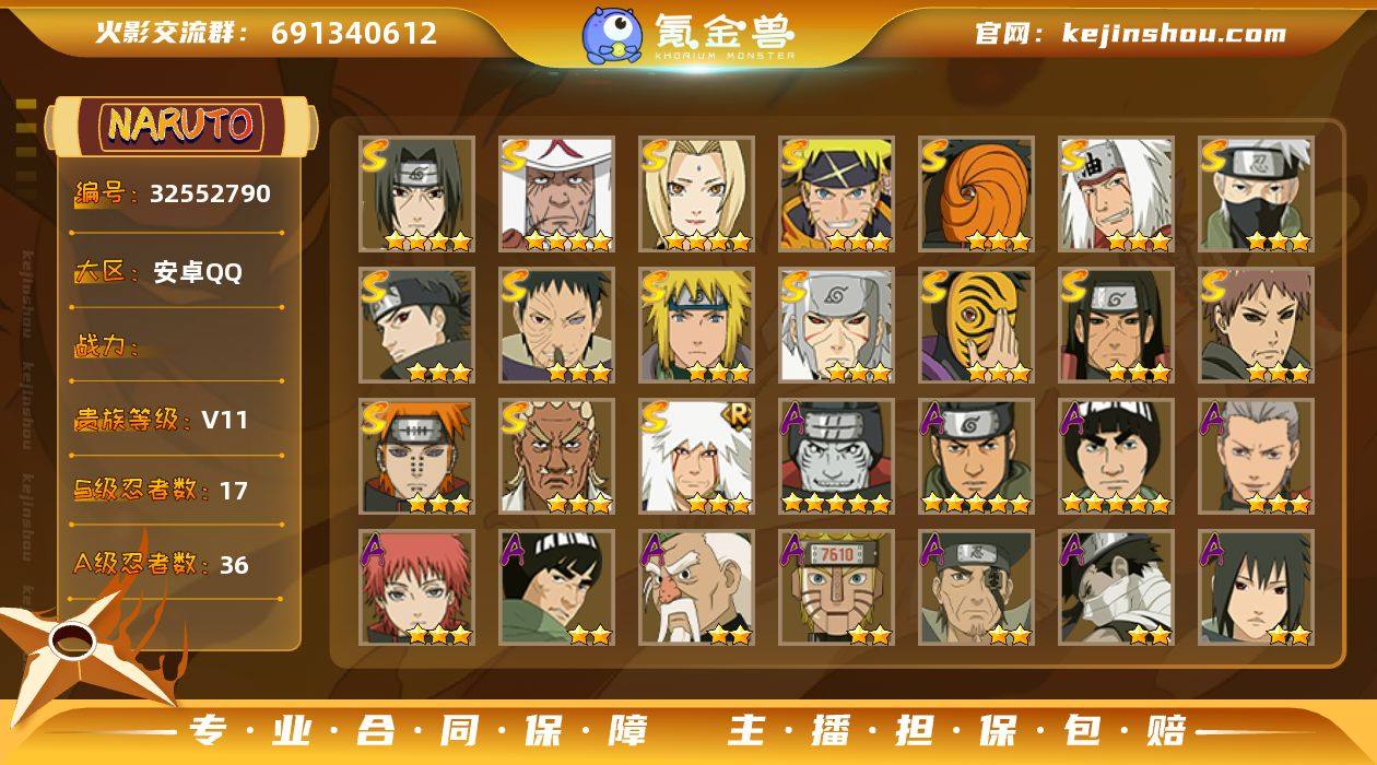 V11/S忍17/A忍36/二星A-波风水门「新春限定」/二星A-大野木「侠隐江湖」/二星A-我爱罗「疾风传」/二星A-达鲁伊「五代目雷影」/二星A-飞段「死司凭血」/五星A-猿飞阿斯玛/三星S-旗木卡卡西「须佐能乎」/2星小南「神驹佑将」/二星A-照美冥「五代目水影」/三星A-蝎/五星A-迈特凯/二星A-宇智波鼬「新春限定」/二星A-奇拉比「忍界大战」/三星S-千手扉间「秽土转生」/2星旗木卡卡西「神威对决」/三星S-罗砂「四代目风影」/二星A-蝎「绯流琥」/二星A-桃地再不斩「秽土转生」/二星A-春野樱「百豪」/四星S-纲手/二星A-地陆/三星S-自来也 「传说中的三忍」/二星A-飞段「恶灵之影」/二星A-宇智波佐助「万花筒写轮眼」/二星A-迪达拉/三星S-神秘面具男/二星A-大蛇丸「晓」/二星A-宇智波鼬/三星S-宇智波带土 「忍界大战」/三星A-飞段/三星S-佩恩「天道」/三星S-漩涡鸣人·宇智波佐助/四星S-宇智波鼬「须佐能乎」/三星S-波风水门/二星A-角都「秽土转生」/三星S-艾「四代目雷影」/三星S-千手柱间「秽土转生」/二星A-李洛克「忍界大战」/二星A-土台「忍界大战」/二星A-卑留呼「火之意志继承者」/二星A-波风水门 「青年」/三星S-自来也「舞之豪杰」/二星A-千手扉间「漂泊武士」/二星A-小南「新春...