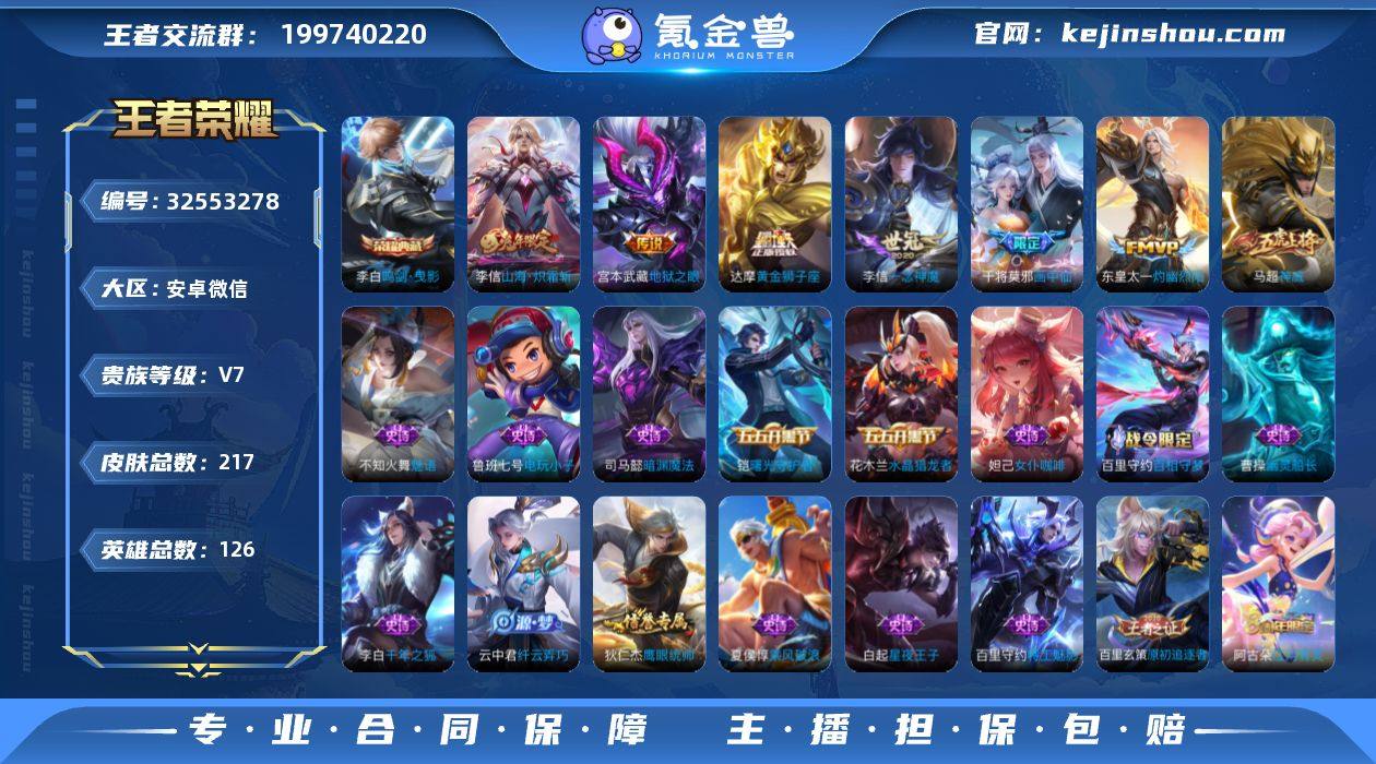 [17816258]V7 1典藏 1珍品传说 11传说 126英雄 217皮肤 可修改实名 女号 【英雄全皮】孙权全皮,影全皮,大禹全皮 【稀有英雄】大司命,韩信(韩跳跳),夏洛特(夏师傅),艾琳,橘右京(橘子),娜可露露(鸟人),不知火舞,赵云,金蝉(唐僧),戈娅 【荣耀水晶】鸣剑·曳影 【珍品传说】怪盗基德 【传说皮】神树通天,山海·炽霜斩(李信年限),黄金狮子座,地狱之眼,一念神魔,画中仙,灼幽烈阳 【珍宝阁皮】胡桃夹子,万物之道,蔷薇恋人 【赛季/战令皮】噬灭天穹(s37),古海寻踪(s33),海盐诗旅(s30),擒涛扼浪(s31),探海日志(s32),顽趣-梦奇,剑破天穹(s35),天穹祈灯(s34),青焰无极,苍威无极,天穹之誓(s36),醍醐杖(s20),原初探秘者(s21),万华元夜(s22),演武夺筹(s23),驱傩正仪(s24),千军破阵(s25),沙漠行僧(s26),金庭之子(s27),大漠名商(s28),云中旅人(s29) 【史诗皮】星界战将,百相守梦-百里守约,线条小狗-周瑜,九幽镇关,万灵启世,涂山容容,紫霞仙子,电玩小子(小书包),特工魅影,千年之狐,江河有灵,蒙恬荣光圣徽,冰冠公主,偶像歌手,魅语,猫狗日记-孙策,节奏热浪,女仆咖啡,摇滚巨星,水果甜心,绅士熊喵,天才门将,星夜王子,功夫厨神,德古拉伯爵,暗隐猎兽者,幽灵船长,鬼剑武藏,暗渊魔法,舞动绿茵,诗语江南,...