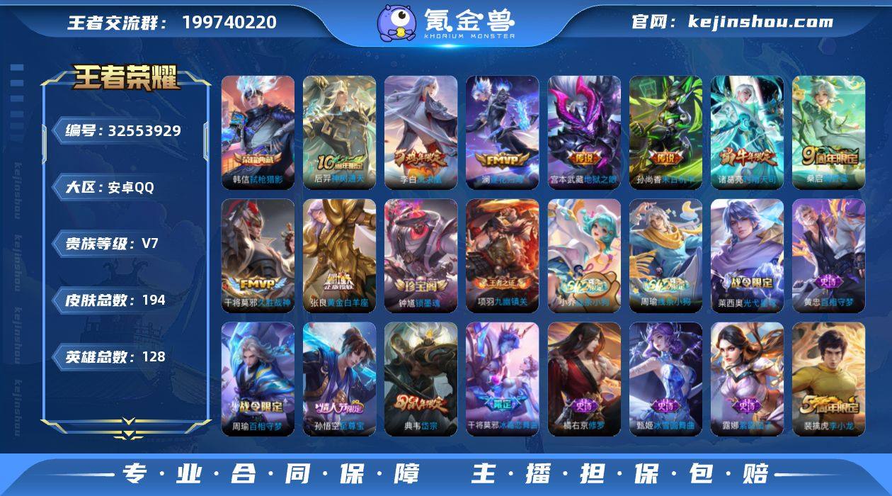 【938401】[17813655]V7 1典藏 9传说 128英雄 194皮肤 可修改实名 男号 【英雄全皮】敖隐全皮,大禹全皮 【稀有英雄】敖隐(小龙人),大司命,嬴政(始皇帝),韩信(韩跳跳),夏洛特(夏师傅),艾琳,橘右京(橘子),娜可露露(鸟人),不知火舞,赵云,金蝉(唐僧),戈娅 【荣耀水晶】弑枪猎影(韩信典藏) 【传说皮】神树通天,黄金白羊座,地狱之眼,末日机甲-孙尚香(绿蚂蚱),久胜战神,澜逐花归海 【珍宝阁皮】锁墨魂,万物之道 【赛季/战令皮】噬灭天穹(s37),天穹祈灯(s34),凯尔特女王(s7),狰(s8),饕餮(s9),烛龙(s10),重明(s11),御狮(s13),御霄(s14),御旌(s15),御銮(s16),朔风刀(s17),混沌棋(s18),疑决卦(s19),醍醐杖(s20),原初探秘者(s21),万华元夜(s22),演武夺筹(s23),驱傩正仪(s24),猎兽之王,神迹守卫-钟馗,狮舞东方,赤莲之焰,驯魔猎人 【史诗皮】茶境仙,线条小狗-周瑜,九幽镇关,线条小狗-小乔,光弋星穹,百相守梦-周瑜,百相守梦-黄忠,紫霞仙子,黄金分割率,特工魅影,偶像歌手,白蛇,猫狗日记-孙策,节奏热浪,修罗,摇滚巨星,水果甜心,绅士熊喵,天才门将,星夜王子,心灵骇客,功夫厨神,暗隐猎兽者,幽灵船长,心灵战警,繁星吟游(呼啦呼啦),缤纷独角兽,乘风破浪,逐浪之夏,月团寄思,曙光守护者,金属风暴,原...