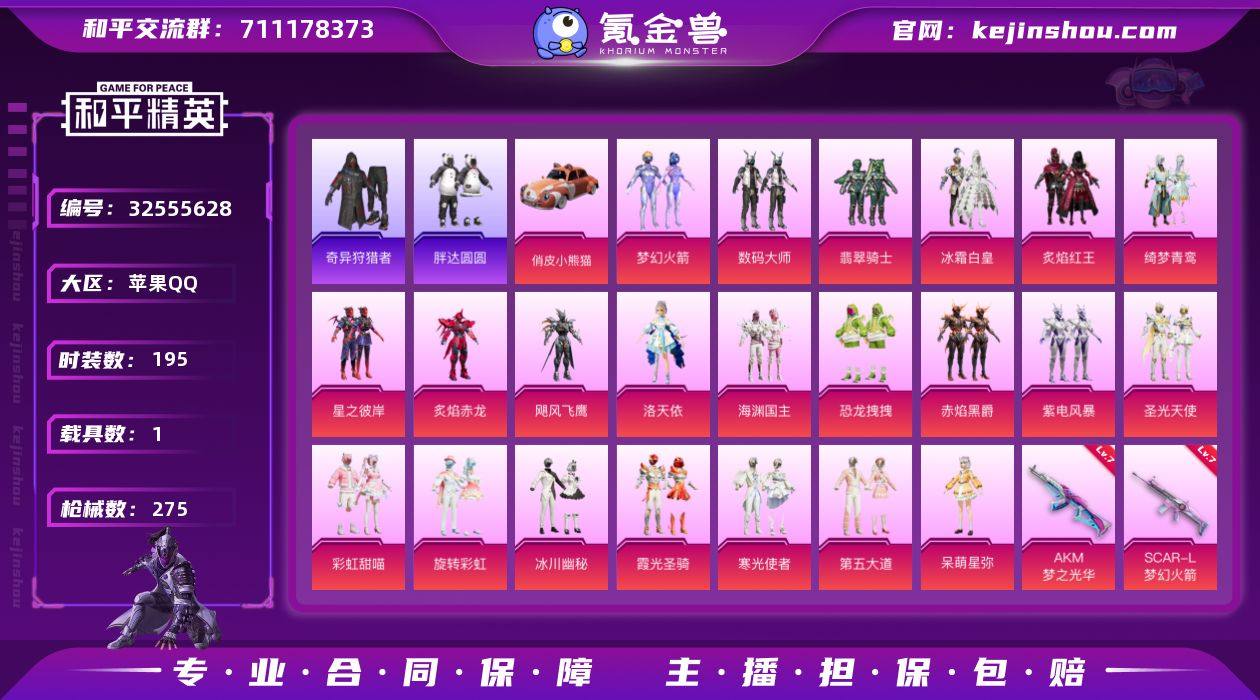 无二次 苹果 手Q-22粉装-8特效枪-1载具-4粉色飞行器-96456热力值-6王牌印记-195套装-275枪皮 HZ25639 【热门品类】:粉装-梦幻火箭,套装-奇异狩猎者,角色-军刀雅典娜,套装-胖达圆圆 【粉色套装】:粉装-数码大师,粉装-梦幻火箭,粉装-翡翠骑士,粉装-冰霜白皇,粉装-炙焰红王,粉装-绮梦青鸾,粉装-星之彼岸,粉装-炙焰赤龙,粉装-飓风飞鹰,角色-洛天依,粉装-海渊国主,粉装-恐龙拽拽,粉装-赤焰黑爵,粉装-紫电风暴,粉装-圣光天使,粉装-彩虹甜喵,粉装-旋转彩虹,粉装-冰川幽秘,粉装-霞光圣骑,粉装-寒光使者,粉装-第五大道,角色-呆萌星弥 【粉色枪皮等级】:AKM-梦之光华(七级),M16A4-垂柳戏鸭(五级),SCAR-L-梦幻火箭(七级),M416-五爪金龙(七级),GROZA-旋转彩虹(五级),M762-冷魅冰骑(五级),Kar98K-巳巳如意(四级),MG3-洛神天依(五级) 【粉色载具】:俏皮小熊猫 【粉色枪皮】:AKM-梦之光华,M16A4-垂柳戏鸭,SCAR-L-梦幻火箭,M416-五爪金龙,GROZA-旋转彩虹,M762-冷魅冰骑,Kar98K-巳巳如意,MG3-洛神天依 【粉色飞行器】:梦幻火箭飞行器,阿狸红飞行器,庄周梦蝶飞行器,星夜魔法师飞行翼 【粉色降落伞】:梦幻火箭降落伞,神秘黑猫降落伞,甜蜜誓约...