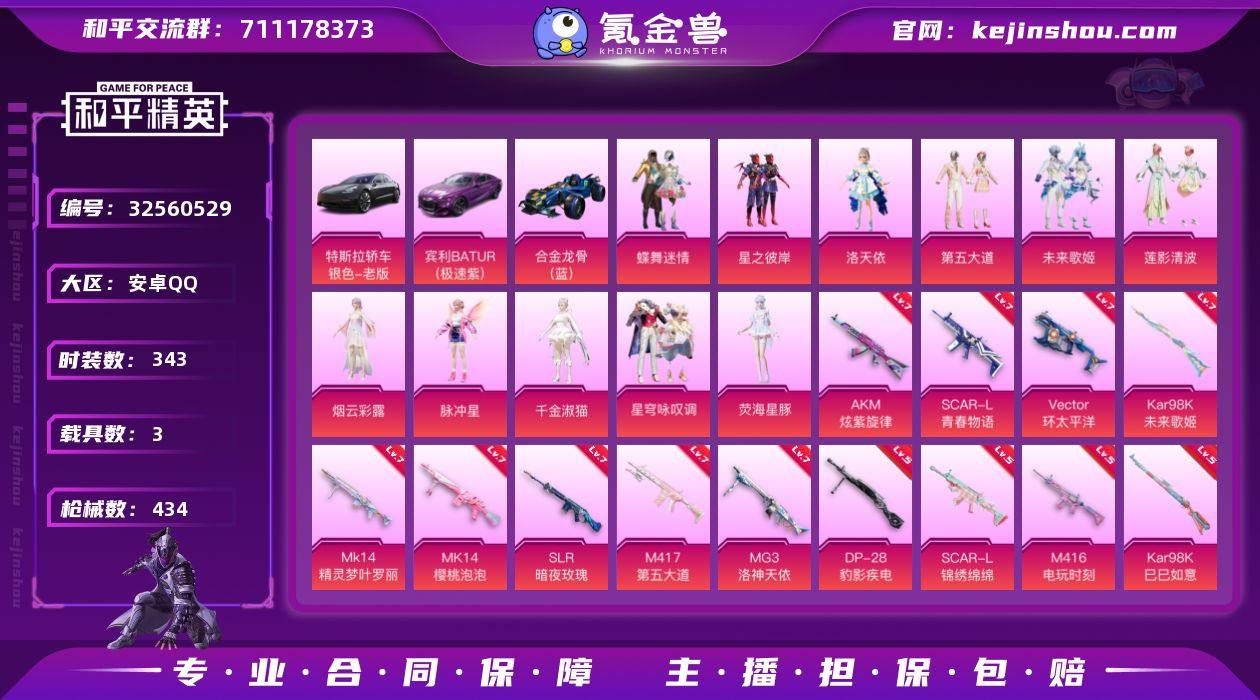 J2754 精品 14粉 16特 3载具 千金淑猫 女王 荧海星豚 星穹咏叹调 烟云彩路 未来歌姬 第五大道 洛天依 星之彼岸 满级青春物语 满级洛神天依 满级炫紫旋律 92级收藏家 安卓 手Q-14粉装-16特效枪-3载具-7粉色飞行器-157440热力值-27王牌印记-343套装-434枪皮 【热门品类】:套装-浪漫天命,角色-军刀雅典娜,旭日初心兜帽大衣,套装-龟仙人,套装-粉红小猪 【粉色套装】:角色-女王,粉装-蝶舞迷情,粉装-星之彼岸,角色-洛天依,粉装-第五大道,粉装-未来歌姬,粉装-莲影清波,角色-烟云彩露,角色-脉冲星,角色-千金淑猫,粉装-星穹咏叹调,角色-荧海星豚,角色-霁蓝缠春,角色-虎痴许褚 【粉色枪皮等级】:AKM-炫紫旋律(七级),SCAR-L-青春物语(七级),SCAR-L-锦绣绵绵(五级),M416-电玩时刻(五级),Vector-环太平洋(七级),AKS-74U-森灵之息(五级),Kar98K-未来歌姬(七级),Kar98K-巳巳如意(五级),Mk14-精灵梦叶罗丽(七级),Mk14-樱桃泡泡(七级),Mk14-福马献瑞(五级),SLR-暗夜玫瑰(七级),M417-第五大道(七级),DP-28-豹影疾电(五级),MG3-洛神天依(七级),信号枪-金乌曜日(一级) 【粉色载具】:特斯拉Model 3(冷光银),宾利BATUR(极速紫),合金龙骨(蓝) 【粉色枪皮...