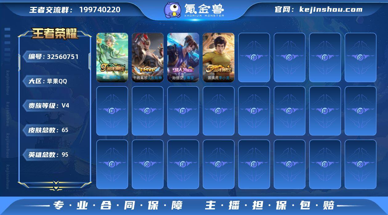 苹果Q 不可二次 2传说 95英雄65皮肤 鸣野蒿 久胜战神 涂山容容 至尊宝 冰冠公主 天秀启明 李小龙 水晶猎龙者 金属风暴 曙光守护者 修罗 千年之狐 紫霞仙子 幽灵船长 天才门将 街头霸王 摇滚巨星 鬼剑武藏 未来纪元赵云 魅力维加斯 水果甜心 乱世虎臣 鹰眼统帅 王者荣耀账号