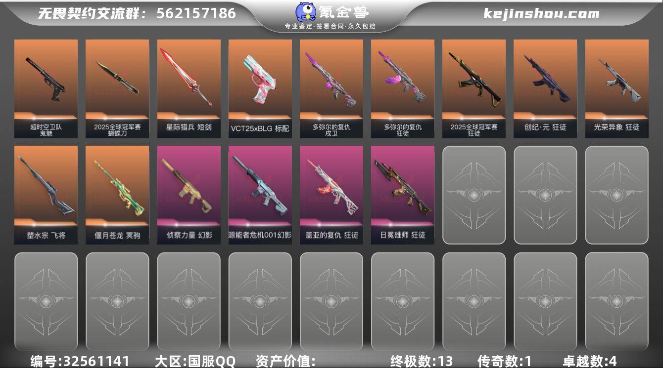 【PTWW2815】终极*13/传奇*1/卓越*4/皮肤*43/等级*103/段位:白银/2025全球冠军赛/幻棱/炼狱/维斯/暮蝶/壹决/捷风/雷兹/幽影/不死鸟/贤者/猎枭/蝰蛇/芮娜/尚勃勒/霓虹/夜露/K/O/黑梦/钢锁/2025全球冠军赛 蝴蝶刀/影钩/紫金爪刀/星际猎兵 短剑/2025全球冠军赛 狂徒/狂徒-创·纪元/狂徒-光荣异象/多弥尔的复仇 狂徒/狂徒-盖亚的复仇/狂徒-日冕雄师/幻影-源能者危机001/幻影-侦察力量/多弥尔的复仇 戍卫/冥驹-偃月苍龙/飞将-塑水宗/骇灵-无限竞技/标配-VCT25xBLG/鬼魅-超时空卫队/失而复得 卡面/树懒大作战 卡面/红鳞松叶 卡面/霓帧牛蛙 卡面/无畏契约GO!第一卷:芮娜 卡面/无畏契约GO!第一卷:零 卡面/《双城之战》金克丝 卡面/暗枪 卡面/钢锁vs盖可 卡面/代号红色 卡面/新兵报到 卡面/V契约 卡面/无畏契约 卡面/买装还是存钱 喷漆/关门放狗 喷漆/红鳞 喷漆/松叶 喷漆/放下武器 喷漆/胜利属于无畏契约 喷漆/GLHF 喷漆/无畏契约 喷漆/猫猫木乃伊 挂饰/模拟赫兹 挂饰/天外飞客 挂饰/双城之战魄罗挂饰/无畏契约 纪念币 挂饰