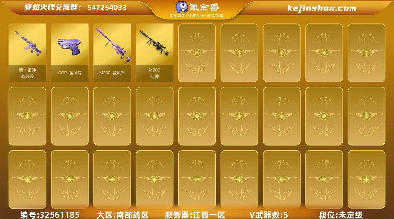 【自带包赔 最高三倍】:南部战区:江西一区-LV14-未定级-5V-0王者武器数-0炫金武器数 【热门武器】:M200-幻神 【角色】:团团 【英雄级武器】:M200-幻神 道具、段位等以实际验号为准。如账号因没有维护,赛季更新等不可抗因素发生变化,不属于账号质量问题"