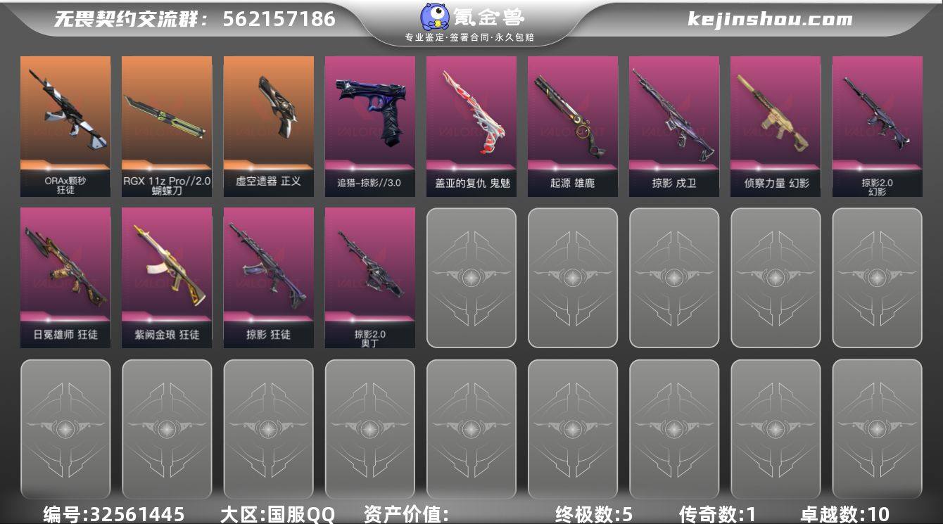 【qyz9220】显卡蝴蝶 掠夺回火一套 鬼丸国纲 qyz9220 【近战武器】:近战武器-影蝶,近战武器-RGX 11z Pro//2.0 蝴蝶刀,近战武器-鬼丸国纲 【狂徒】:狂徒-ORA x 颗秒,狂徒-掠影,狂徒-日冕雄师,狂徒-紫阙金琅 【幻影】:幻影-侦察力量,幻影-掠影//2.0,幻影-神罚 【戍卫】:戍卫-掠影 【奥丁】:奥丁-掠影//2.0 【雄鹿】:雄鹿-起源 【追猎】:追猎-掠影//3.0 【正义】:正义-虚空遗器 【鬼魅】:鬼魅-盖亚的复仇,鬼魅-流星兵团 【卡面】:霓帧牛蛙 卡面,梦幻奶茶 卡面,终章:打造专属狂徒 卡面,趁热吃 卡面,源能反应 卡面,零点嗅探设计图 卡面,清除名单 卡面,暗枪 卡面,代号红色 卡面,新兵报到 卡面,V契约 卡面,无畏契约 卡面 【喷漆】:超能偶像 喷漆,拼一枪 喷漆,我觉得不行 喷漆,我的刀呢? 喷漆,新潮流 喷漆,双击点赞 喷漆,无畏契约GO!第一卷:捷风 喷漆,胜利属于无畏契约 喷漆,GLHF 喷漆,无畏契约 喷漆 【挂饰】:第九季//第一幕 纪念币 挂饰,第八季:白银 挂饰,终章:迷你机甲 挂饰,战术河童 挂饰,荧光棒 挂饰,第八季//第三幕 纪念币 挂饰,第八季//第二幕 纪念币 挂饰 ,无畏契约 纪念币 挂饰