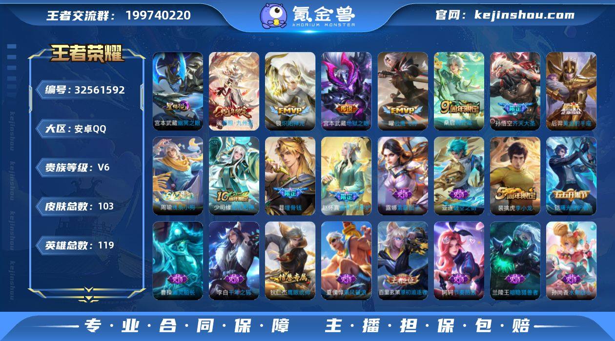 MWZ105965【V6 皮肤103 传说7 星传说1 幽冥之眼】安卓Q-103皮肤-119英雄 【传说皮肤】 鸣野蒿 愿照·九州拓 齐天大圣 地狱之眼 黄金射手座 炽阳神光 云鹰飞将 【史诗皮肤】 破空之剑 星界战将 器灵·浮梦炉 线条小狗 埋骨钱 荣光圣徽 巫礼祀神 幽灵船长 魅力维加斯 魔术师 鹰眼统帅 箭羽风息 鬼剑武藏 曙光守护者 暗隐猎兽者 千年之狐 地狱岩魂 紫霞仙子 圣诞狂欢 李小龙 水果甜心 偶像歌手 乘风破浪 皇家上将 节奏热浪 原初追逐者 【勇者皮肤】 云中旅人 神迹守卫 探海日志 海盐诗旅 天穹祈灯 命运加冕 危途狂花 群星魔术团 糖果风暴 噬灭天穹 暗都幽影 天穹之誓 剑破天穹 熔金海岸 绒语心约 功夫炙烤 归虚梦演 未来纪元 龙腾万里 街头霸王 阿尔法小队 功夫老勺 敏锐之力 万事如意 汉昭烈帝 哥特玫瑰 乓乓大师 红桃皇后 虹云星官 次元突破 西部大镖客 坚韧之力 天使之翼 海滩派对 死亡骑士 五福同心 忍·炎影 花好人间 掌控之力 擒涛扼浪 圆桌骑士 大漠名商 潮玩探月行 爱心护理 拳王 守护之力 阴阳师 黄金武士 【稀有英雄】 不知火舞 橘右京 夏洛特 韩信 赵云 营地ID:1664588594
