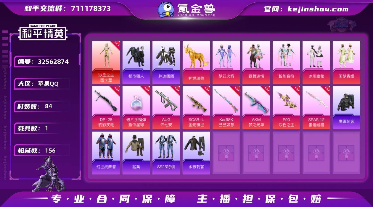 1红装 5粉装 10粉枪 1载具 1稀有装备 84套装 156枪皮 10热门 护世瑞兽 都市猎人 沙丘之主-图卡盟 稀有紫装-都市猎人 糯粉咩咩 梦幻火箭 蝶舞迷情 滨海厨神 吉莉礼服 鹤鸣 潮流炫酷 惊鸿侠骨 竞技名士 锦衣飞扬 元气发射 玉兔迎春 特战装甲 冰冻风暴 特战英豪 街头潮人 旭日情侣 缤纷果语 幻世战舞者 冰川特警 闲梦青缨 智能音符 冰川幽秘 SCAR-L-金蛇镇世(3级) P90-沙丘之主(3级) AKM-梦之光华(5级) S686-生命誓言 GROZA-影袭 Kar98K-影袭 Famas-镜域双华 MG3-镜域双华 S12K-玩趣呆呆 SCAR-L-甜蜜旋律 M24-影袭 AUG-冰川粉黛 QBZ-未来歌姬 Mk47-炫光之旅 DP-28-甜蜜旋律 AC-VAL-天降萌叽 SKS-未来歌姬 MG3-妙红点点 AKM-乌木金纹 MG3-惊鸿侠骨 M200-惊鸿侠骨 AKM-影袭 SKS-金玉无双 爆炸猎弓-惊鸿侠骨 M416-绯红前夜 UZI-影袭 M417-惊鸿侠骨 UMP45-春暖花开 UZI-生命誓言 野牛-沙丘之主 UMP45-生命誓言 M249-沙丘之主 VSS-未来战士 SCAR-L-生命誓言 AUG-闲梦青缨 AKM-龙的传人 M762-萌物绒绒 Kar98K-梦幻火箭 P90-乌木金纹 AC-VAL-闲梦青缨 SPAS-12-蜜语绒猫(4级) AUG-许七安(4级) Kar98K-巳巳如意(5级) 破片手榴弹-瓶中星球(5级) DP-28-豹影疾电(5级) 胖达团团 都市猎人(蓝...