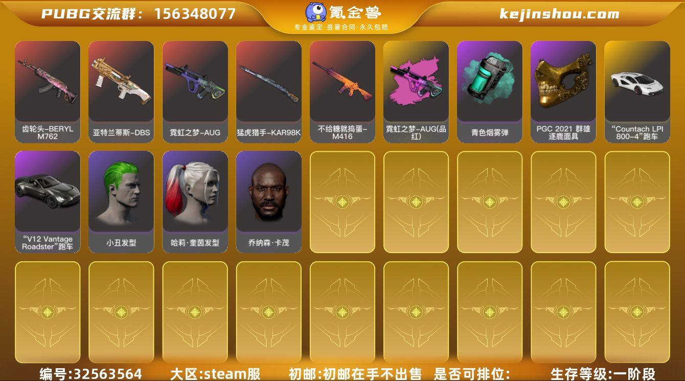 [MXZ979]2级南瓜M4 2级猛虎98k 2级霓虹AUG 1级DBS 1级火麒麟 霓虹AUG(异色) 青色烟雾弹 张图纸 柏林鞋 小丑女 小丑男 兰博基尼跑车 兰博基尼奢华版 马丁敞篷跑车 马丁SUV 陈列室 交易所接待室 黑鬼 金面 丑男妆容 红面巾 黑大衣 发光手臂 萨芬裤 白熊鞋 粉战神 小黄鸭 尼尔 (奢华版)科米特绿 车漆 小马尾 丸子头 小兔学院 悲喜 绷带AK