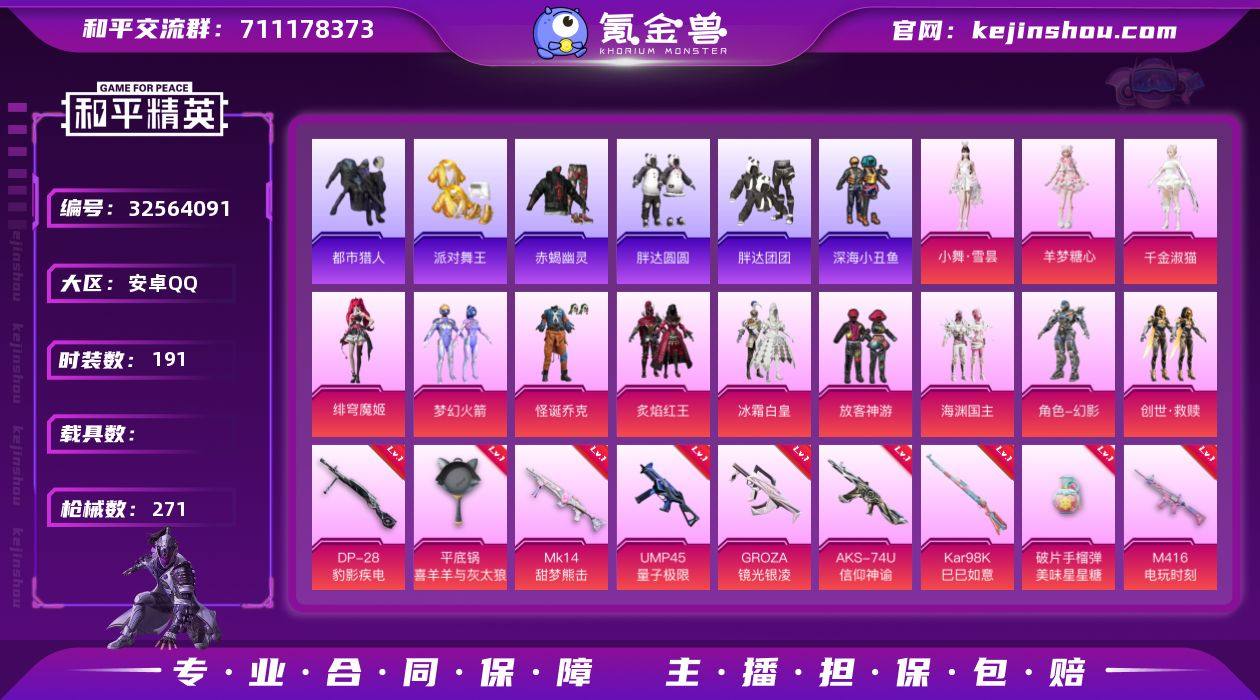 【小丑赤蝎金鞋都市男神15特效枪11粉装酷熊伴侣背包身法素材号 秒换绑不用等】 安卓Q区-82334热力值-191套装-271枪皮 【8稀有】 赤蝎幽灵 都市猎人 派对舞王(金靴子) 酷熊伴侣背包 派对舞王 M416-星际漫游 冷酷挑战者 Mark.06蓝螳螂【11粉装】 怪诞乔克(小丑) 梦幻火箭 冰霜白皇 放客神游 人物-小舞·雪昙 炙焰红王 海渊国主 创世·救赎 角色-绯穹魔姬 角色-羊梦糖心 角色-千金淑猫【15特效枪】 AKM-梦之光华(7级) AA12-G-萌骑幻想(3级) SCAR-L-锦绣绵绵(5级) SCAR-L-童趣迷兔(5级) M762-冷魅冰骑(5级) Vector-环太平洋(6级) 破片手榴弹-美味星星糖(6级) AKS-74U-信仰神谕(7级) Kar98K-巳巳如意(5级) Mk14-甜梦熊击(5级) M416-电玩时刻(5级) GROZA-镜光银凌(5级) DP-28-豹影疾电(5级) UMP45-量子极限(5级) 平底锅-喜羊羊与灰太狼(2级)【292热门】 深海小丑鱼 胖达圆圆 胖达团团 暗影哥特(红眼罩) 浪漫天命 M16A4-星际漫游 雪山精英(老6服) 小丑鱼 迅捷狂鲨 军刀雅典娜 英勇保护者 忍者信条 狂沙舞者 白色伏地魔 SS27特训 SS26特训 SS25特训 SS24特训 SS23特训 SS22特训 Mini14-星际漫游 Mini14-梦幻火箭 M762-暖熊萌萌 AWM-雷霆特警 AKM-缤纷海域 AKM-环太平洋 SCAR-L-玉兔...
